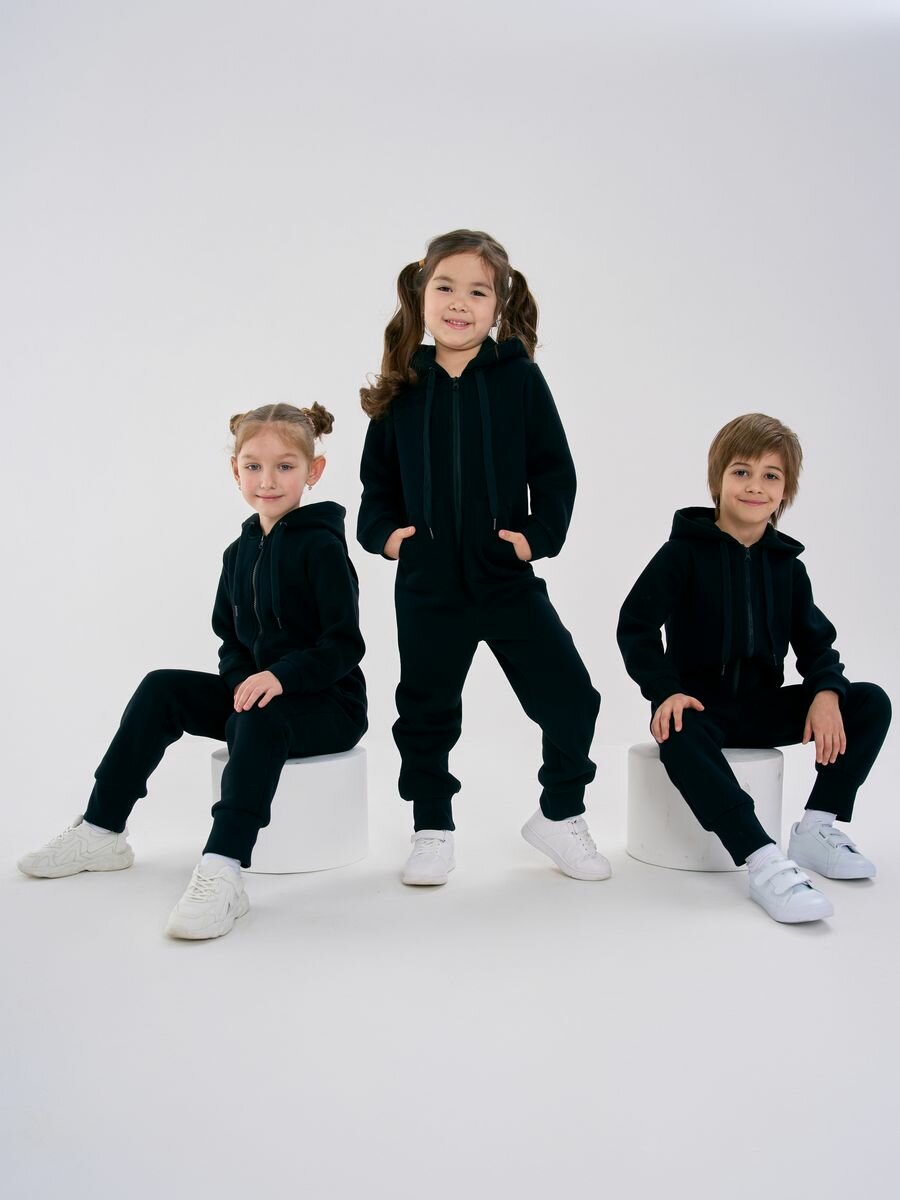 Комбинезон Веселый малыш Утепленный комбинезон футер с начесом , размер 134, черный