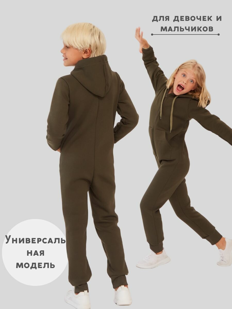 Комбинезон Веселый малыш Утепленный комбинезон футер с начесом , размер 140, Хаки