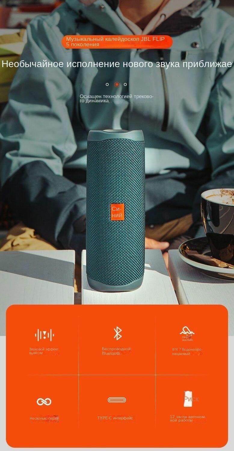 Качественный звук , не хрипит , не шипит на минимальной громкости как флип 4 Максимальная мощность при минимальных размерах!!! |