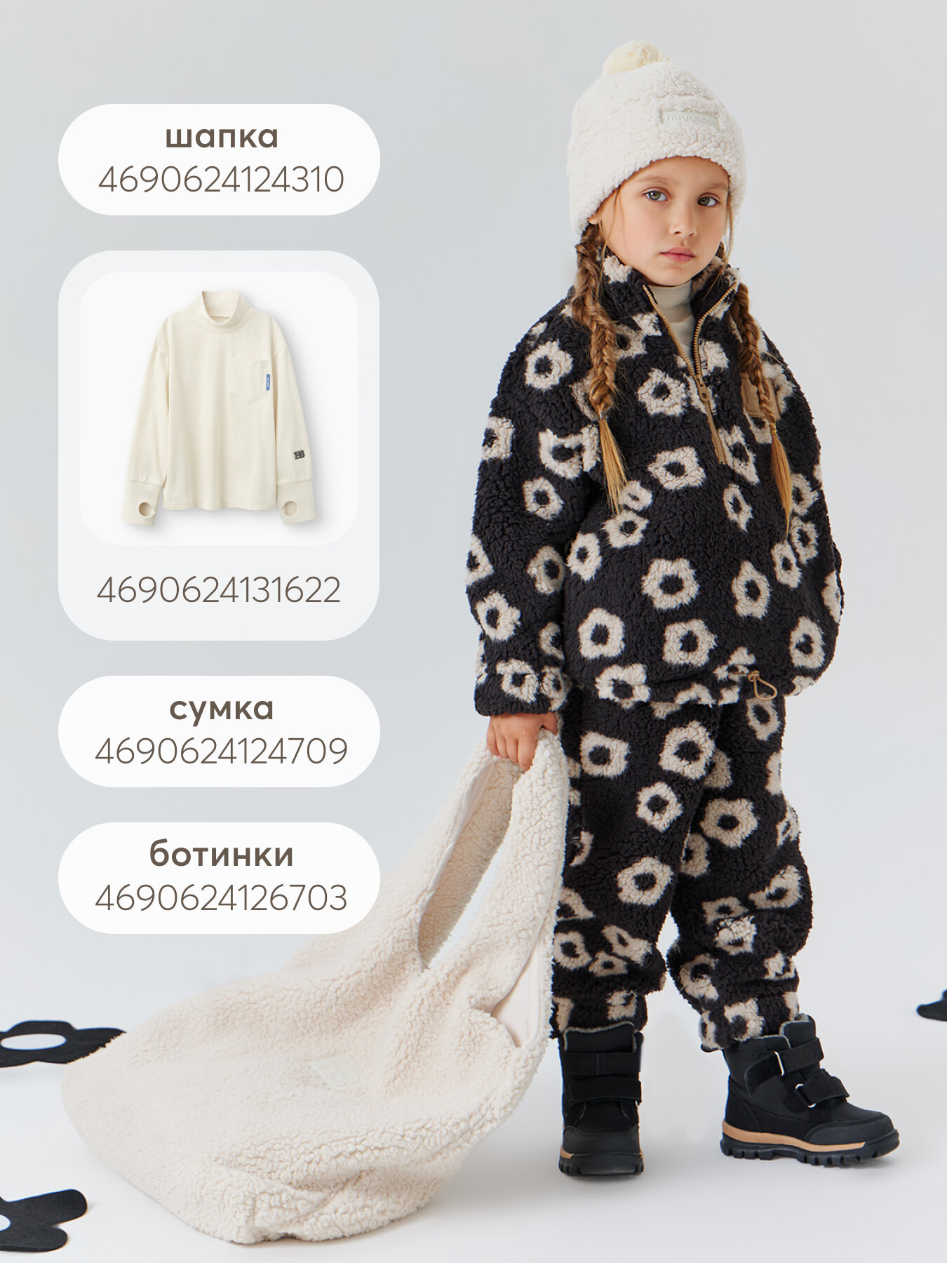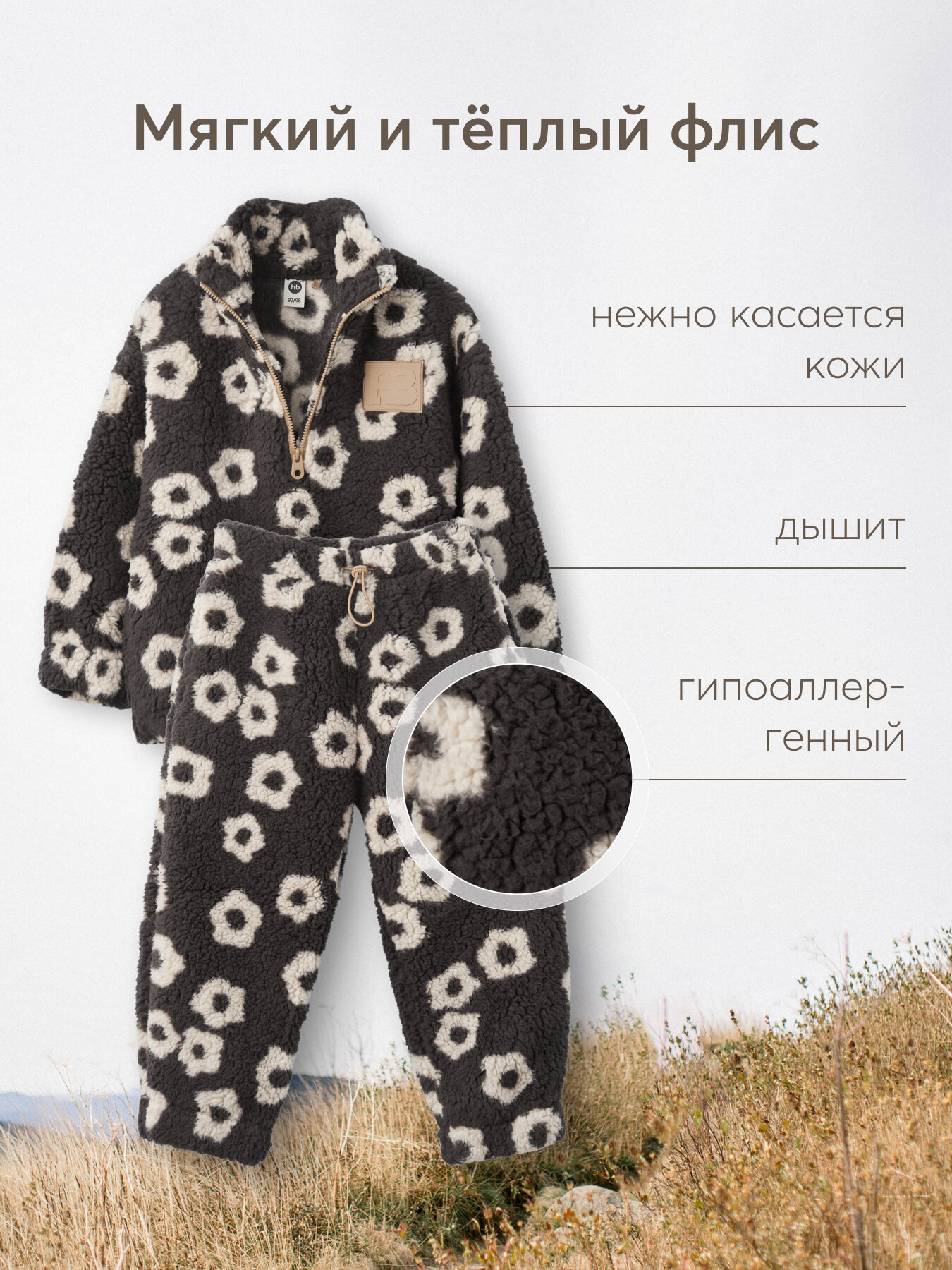 89087, Теплый флисовый костюм Happy Baby для мальчика, для девочки, демисезонный комплект, черный с цветами, рост 116-122