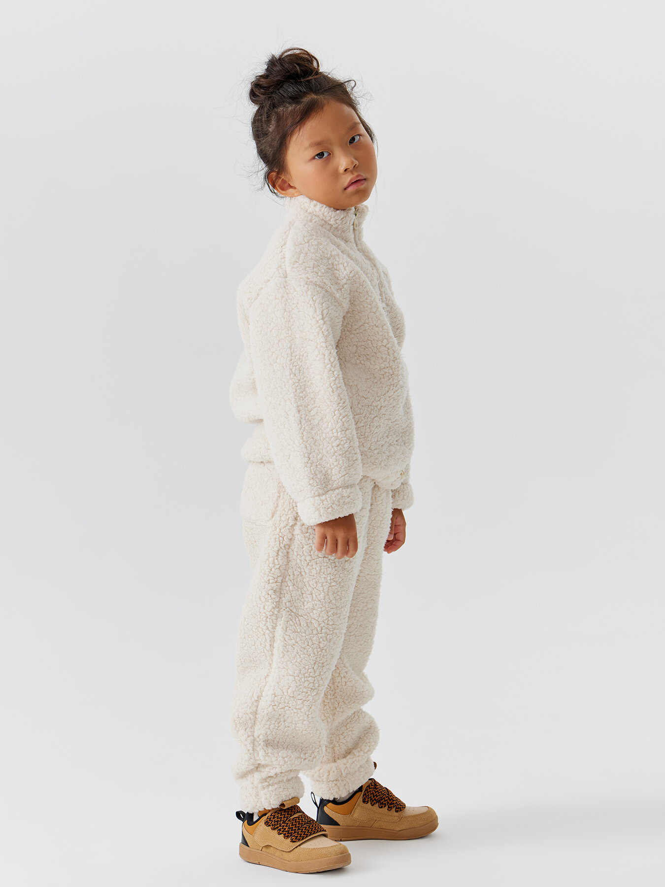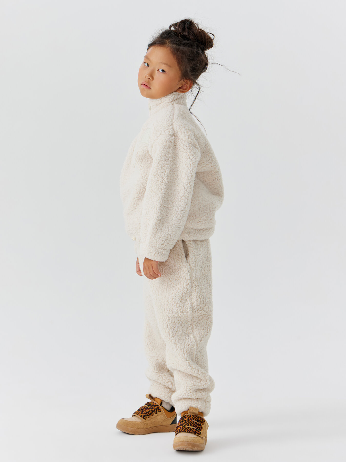 89087, Теплый флисовый спортивный костюм Happy Baby для мальчика, для девочки, демисезонный комплект, кремовый, рост 104-110