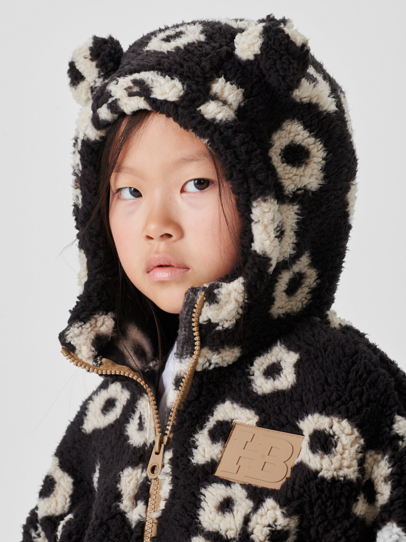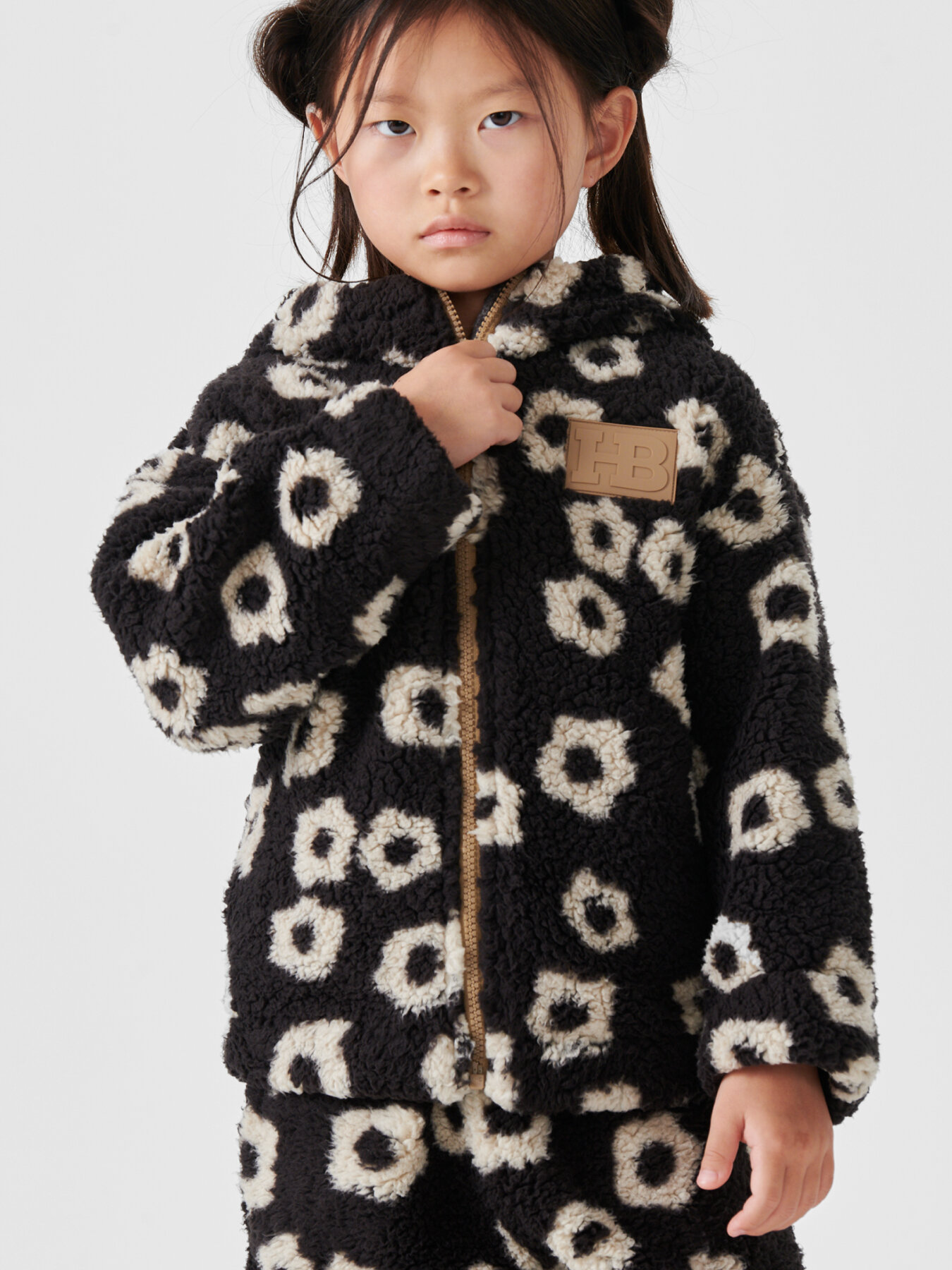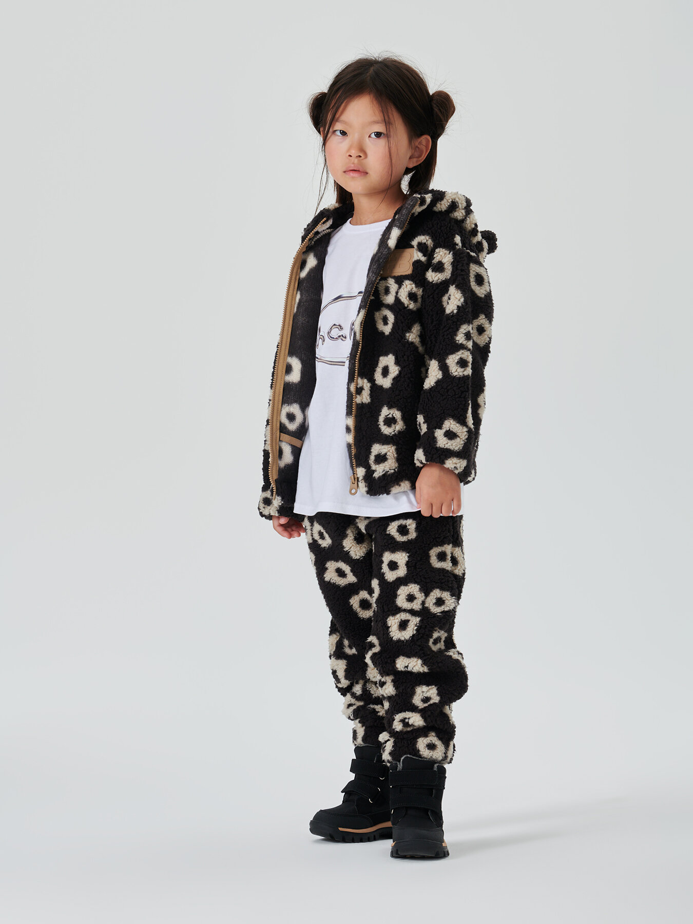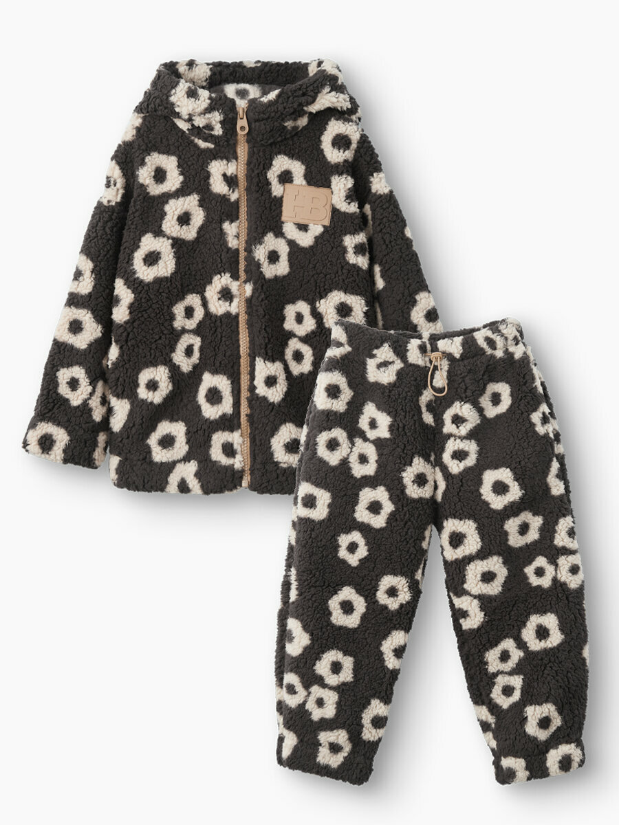 89087, Теплый флисовый костюм Happy Baby для мальчика, для девочки, демисезонный комплект, черный с цветами, рост 116-122
