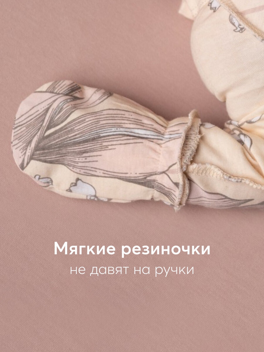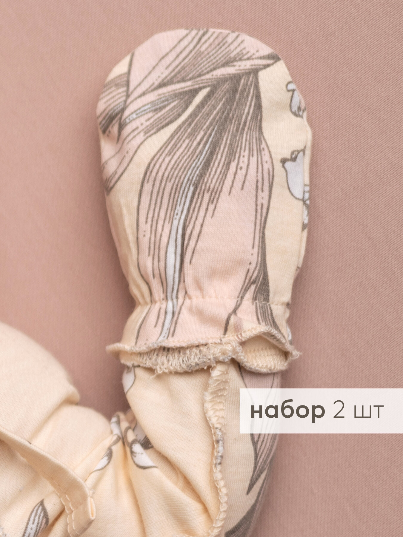 90129, Комплект рукавичек-антицарапок для новорожденных, в наборе 2 пары, с гусями и белые, размер 10