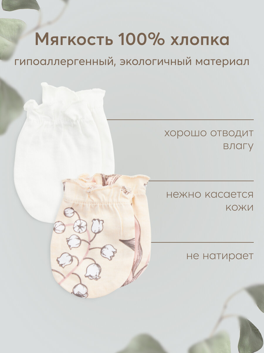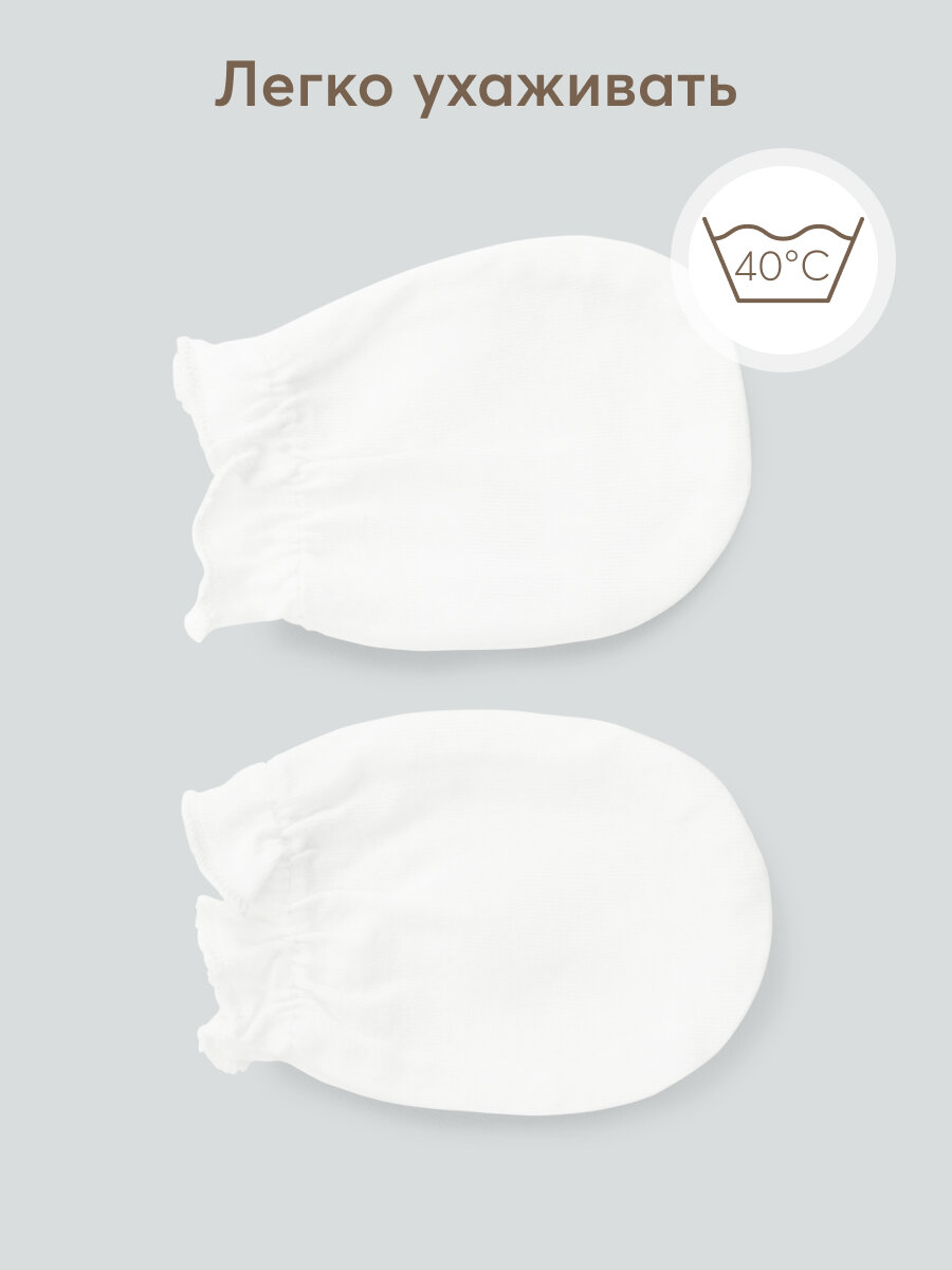 90129, Комплект рукавичек-антицарапок для новорожденных, в наборе 2 пары, с мишками и белые, размер 10