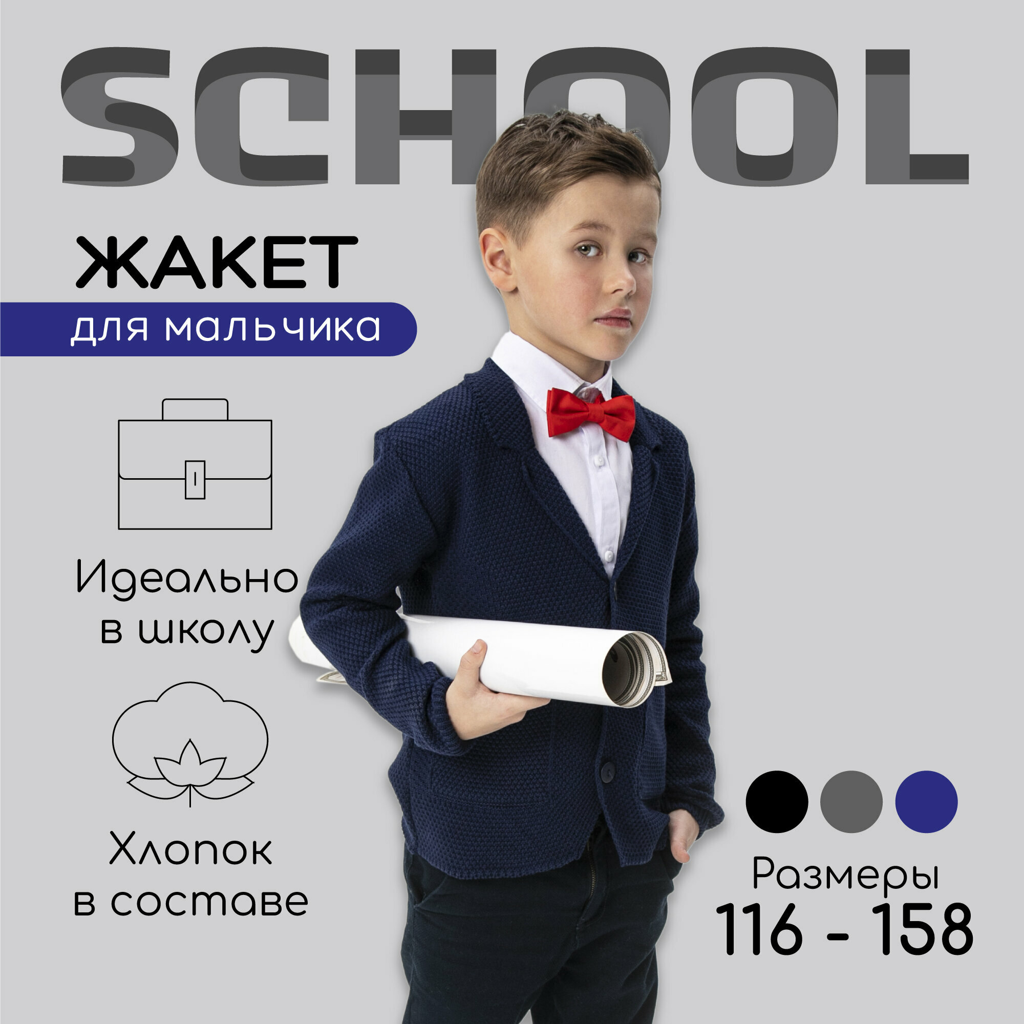 Жакет для мальчика, Amarobaby Pure Love, School, вязаный, черный, (возраст 6-7,рост 122)