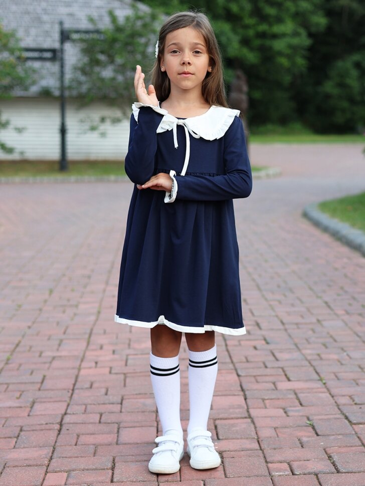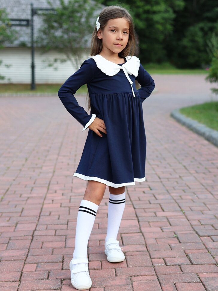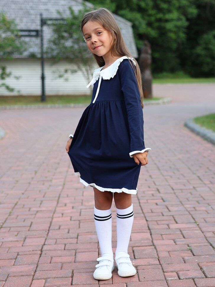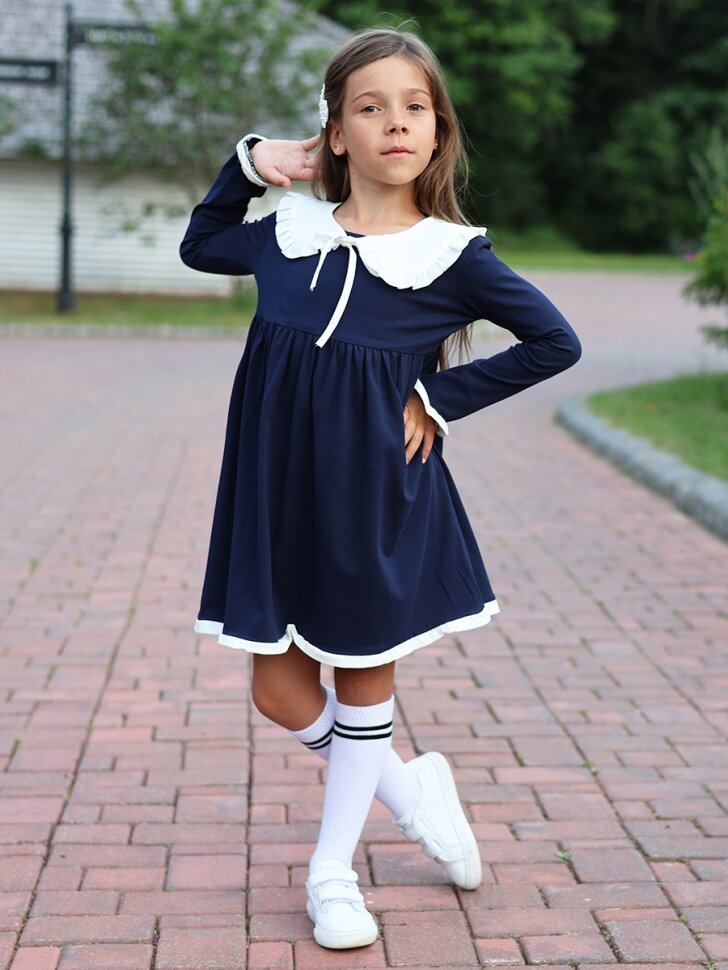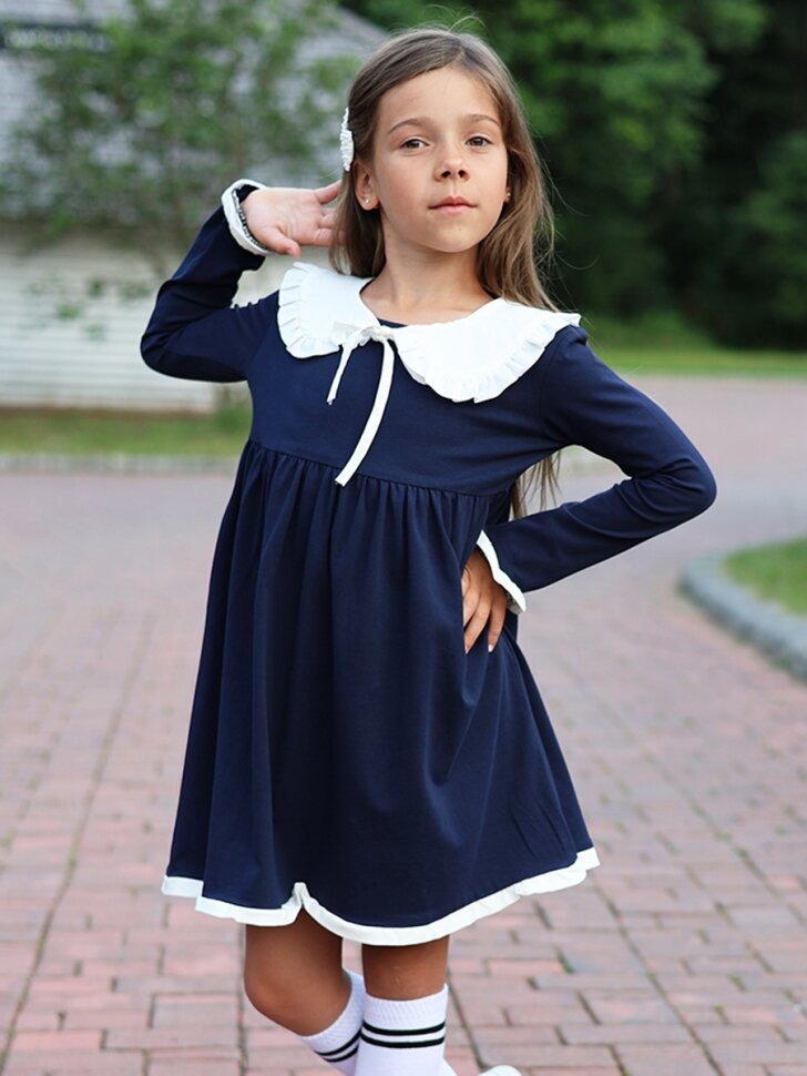 | Дополнительная информация | Платье для девочки школьное БУШОН SK34, цвет темно-синий. Состав материала: Трикотаж 92% хлопок, 8% эластан, плотность 180 г/м интерлок |