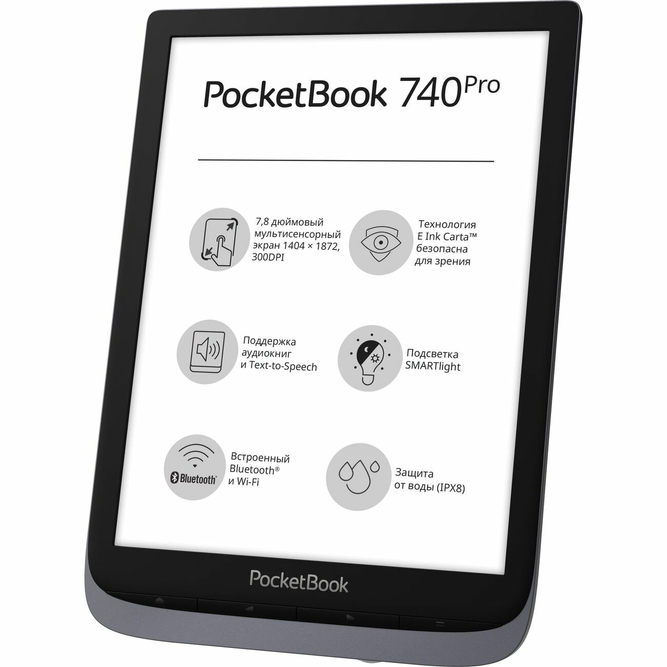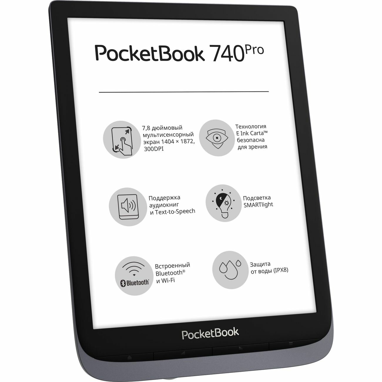 Книга электронная PocketBook 740 Pro 7,8'' E-Ink Carta 1872x1404 сенсорный, подсветка, 16Gb, Wi-Fi, Bluetooth, Защита от воды IPX8 (PB740-2-J-RU)