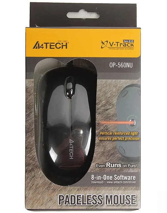 Мышь A4Tech op-560nu, черный, технология v-track, работает на любой поверхности, 1000dpi .