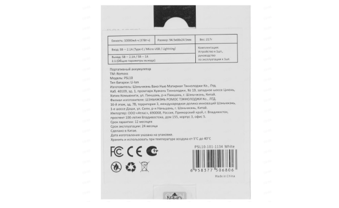 Аккумулятор Romoss Simple 10, 10000 mAh, белый
