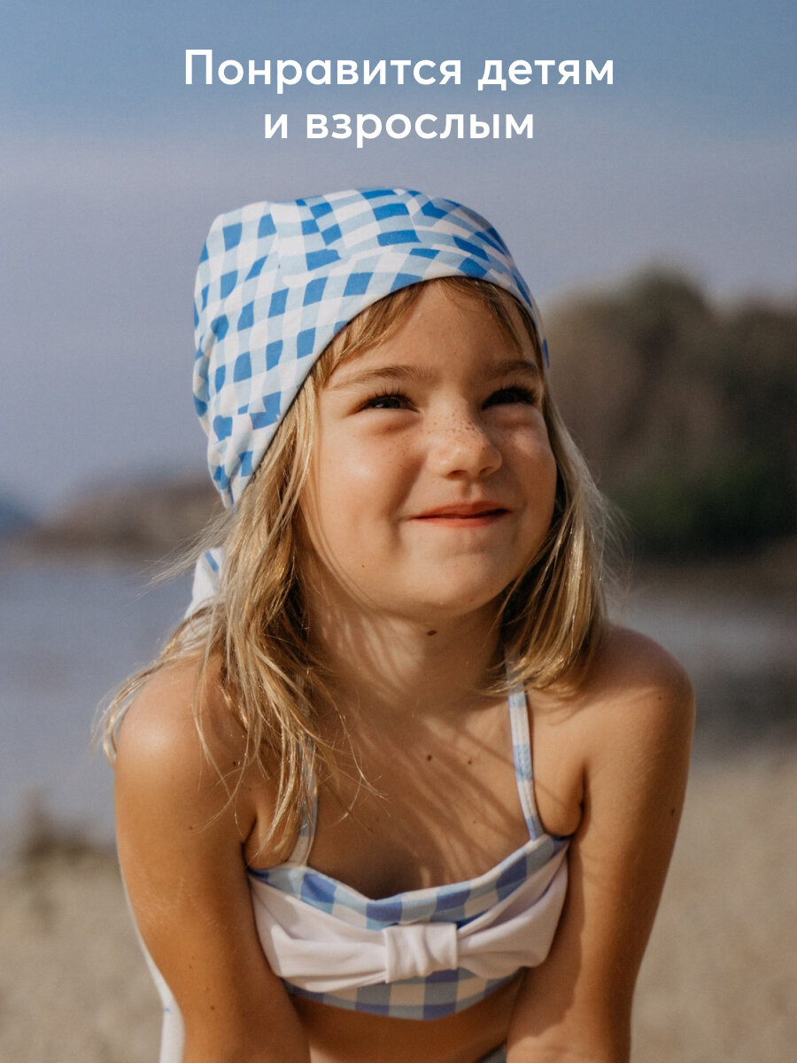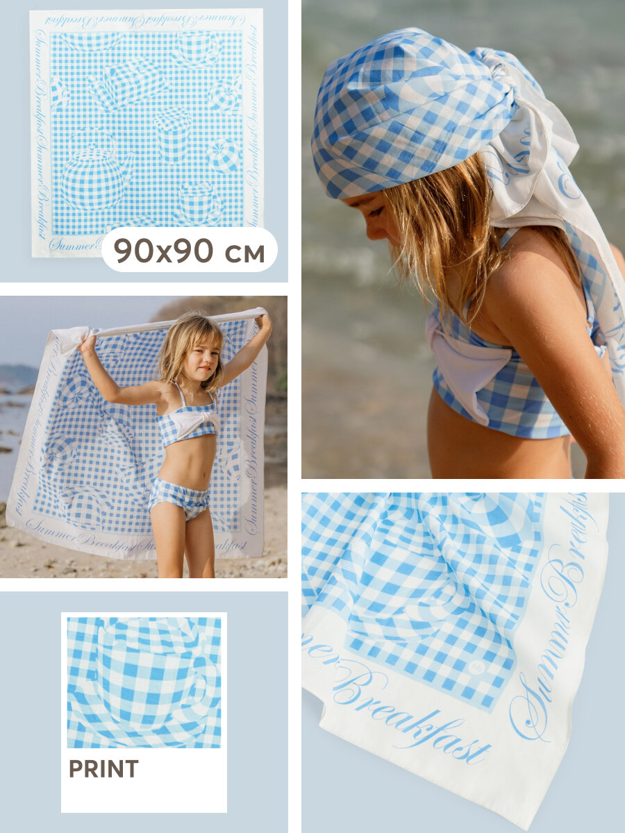 88229, Платок для девочки Happy Baby на голову,шарфик на шею, голубой в клетку, размер 90х90