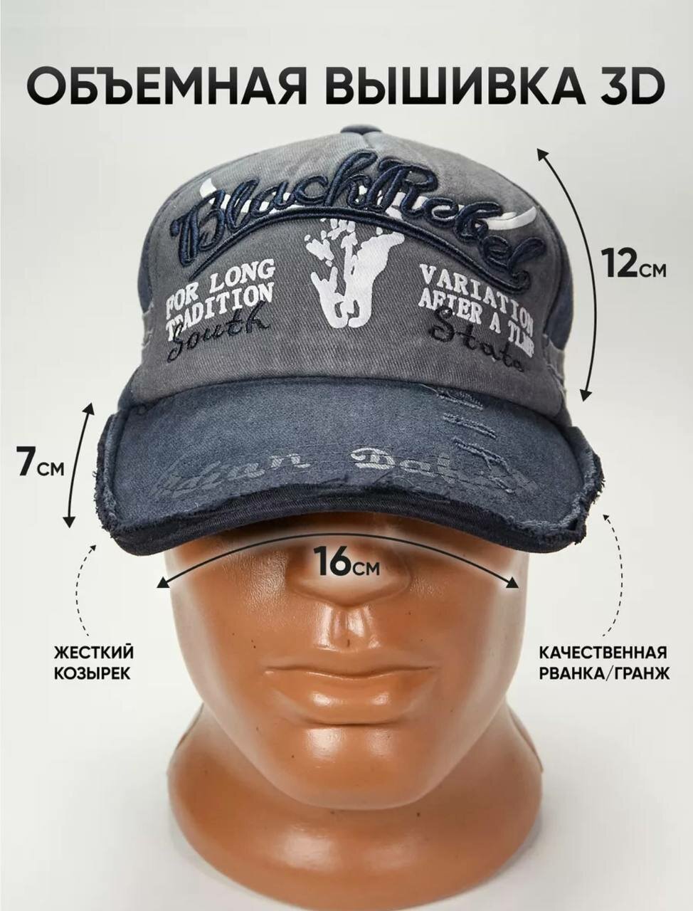 Бейсболка RAMMAX. IT'S MY STYLE BSB_Cap-03/серо-синий_BlackRebel