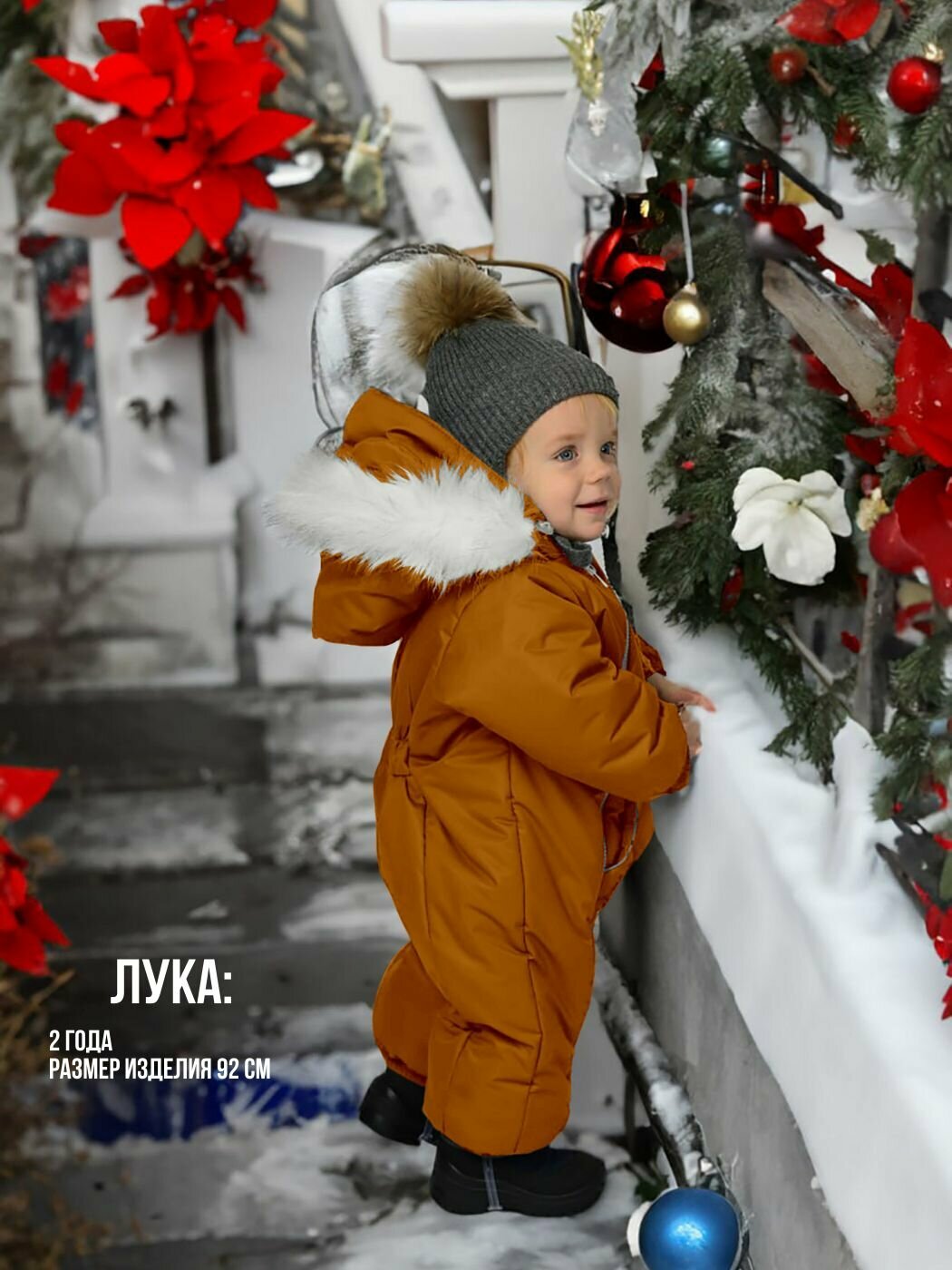Комбинезон для новорожденных зимний детский, Темно-бежевый, 263ш/2 (80 см)