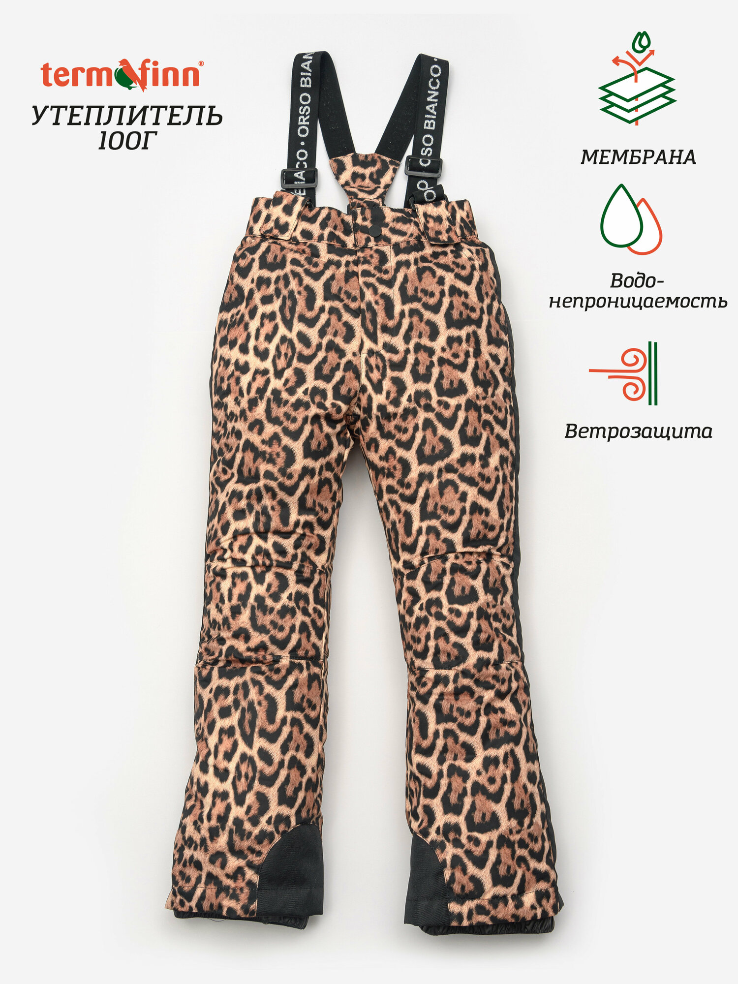 Брюки зимние утепленные Orso Bianco со съемными бретелями Лотти, размер 146 принт леопард