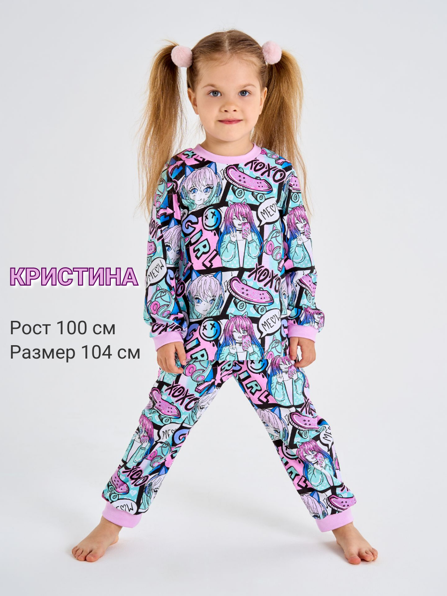 Пижама Веселый Малыш Аниме, размер 110, голубой/розовый