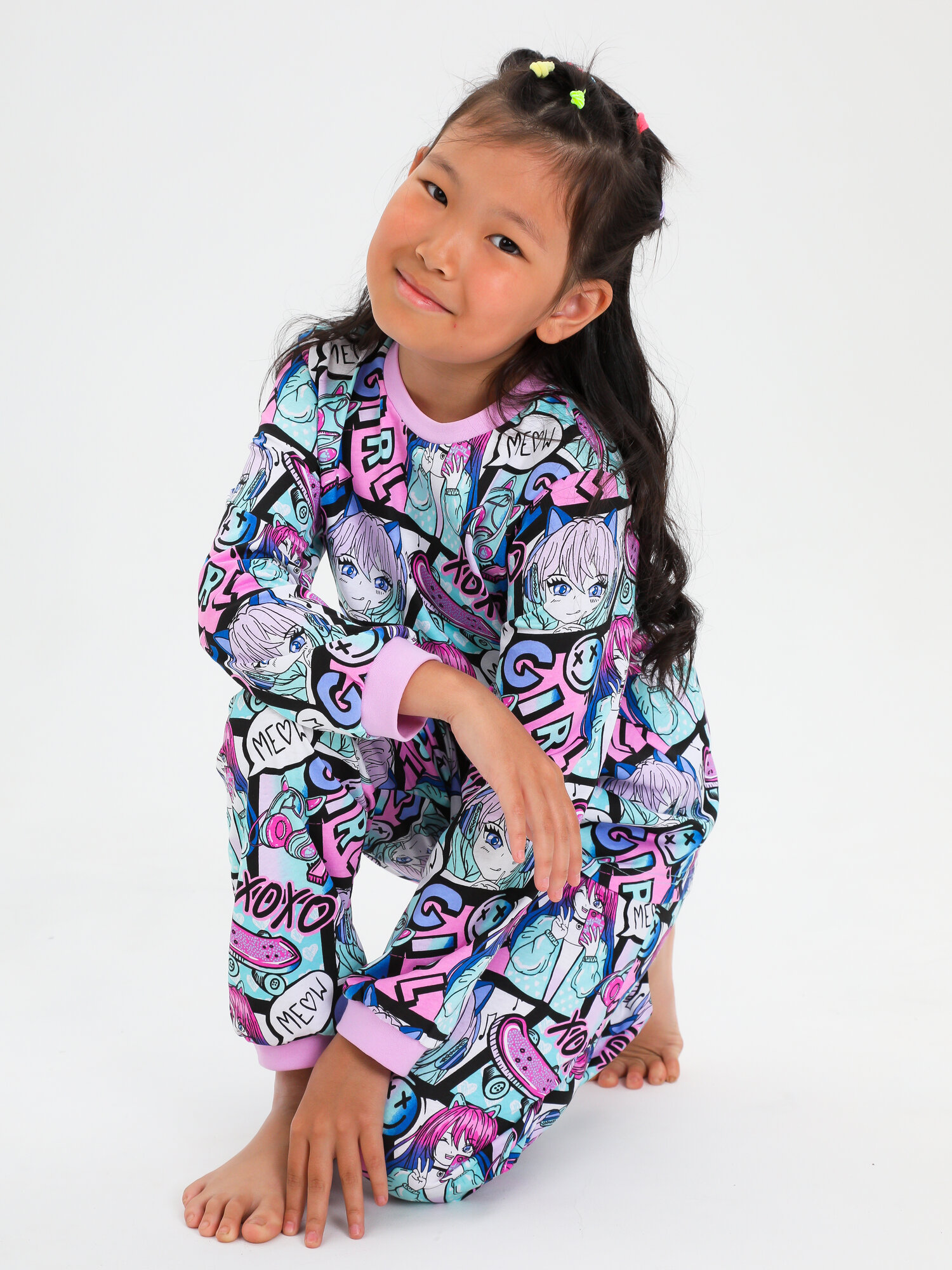 Пижама Веселый Малыш Аниме, размер 110, голубой/розовый