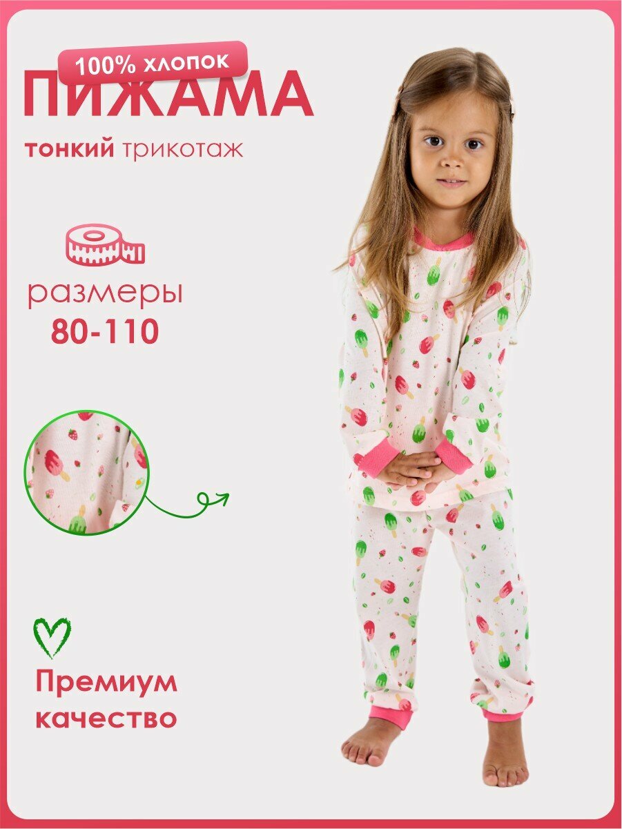 Пижама Веселый Малыш Мороженное, размер 110, розовый, зеленый