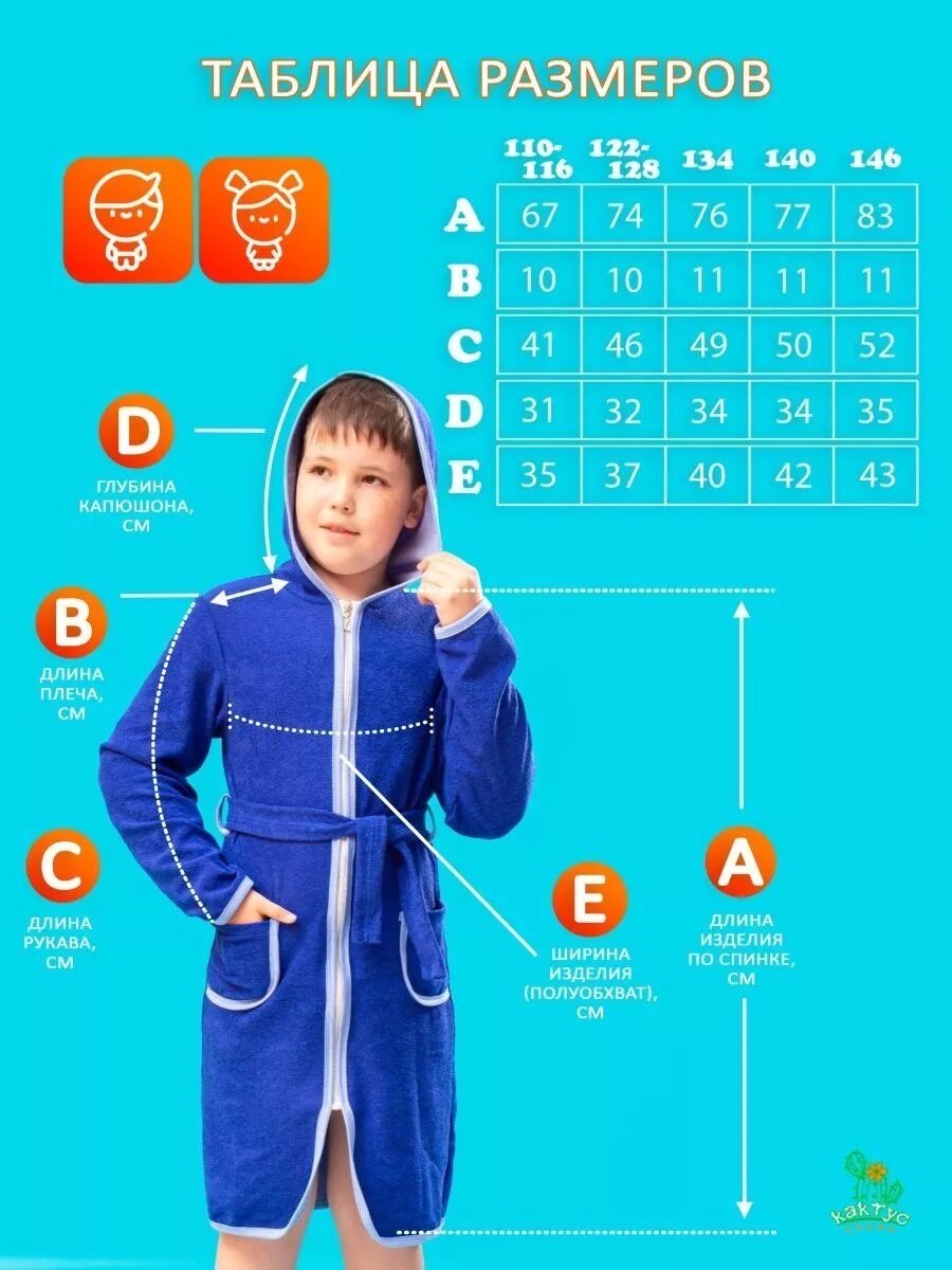 Халат Кактус, размер 122/128, васильковый интересное: