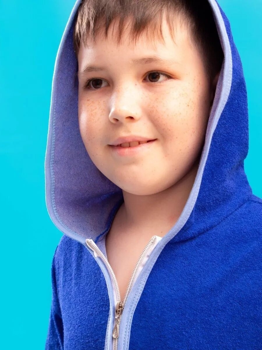 Халат детский банный домашний махровый с капюшоном на молнии