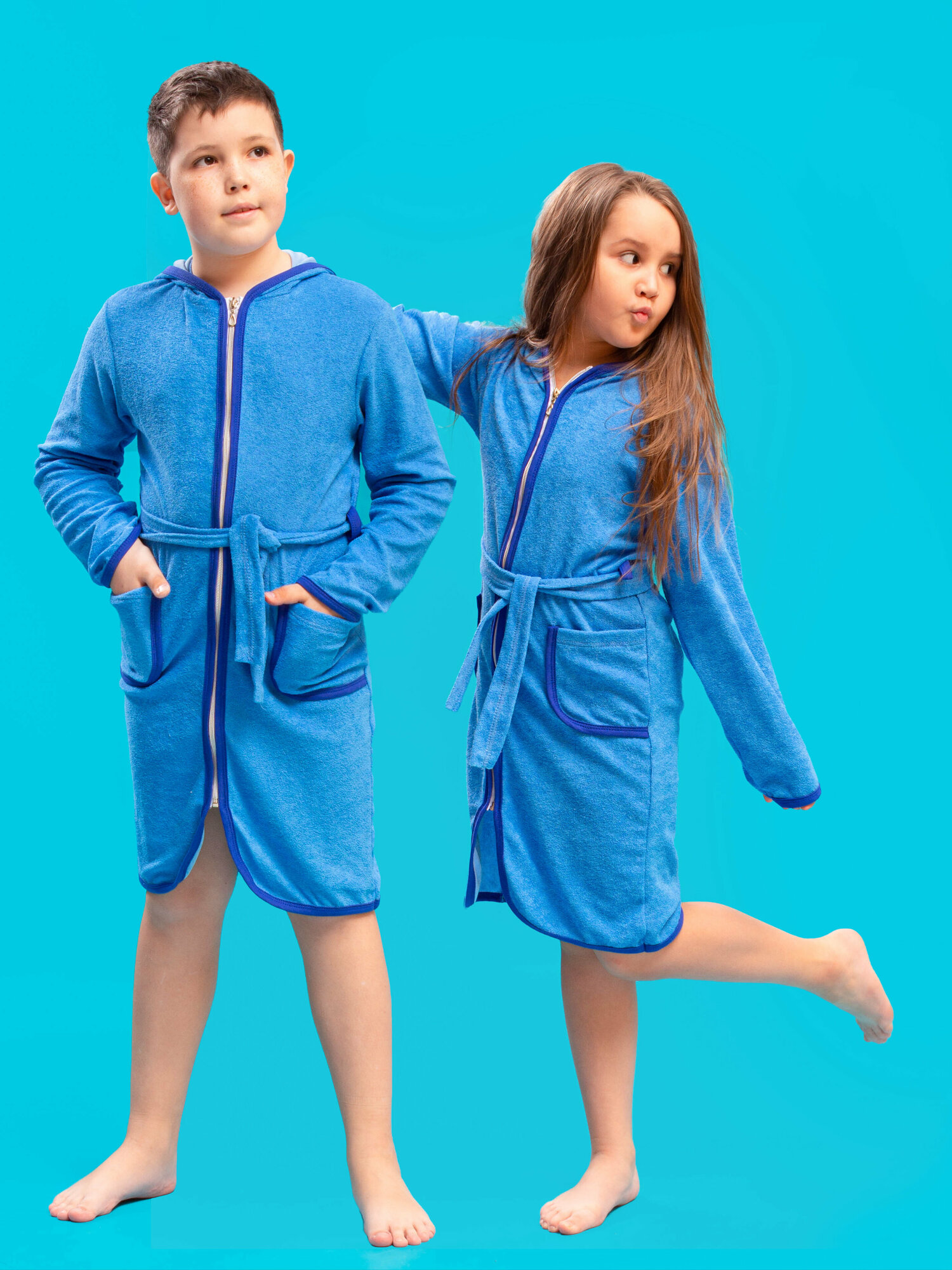 Халат детский банный домашний махровый с капюшоном на молнии