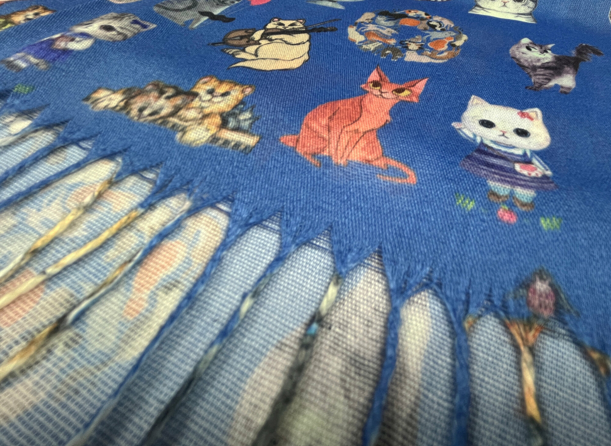 Хлопковый женский палантин с модными котами, новинка 2024г, женский платок с кошками, серый