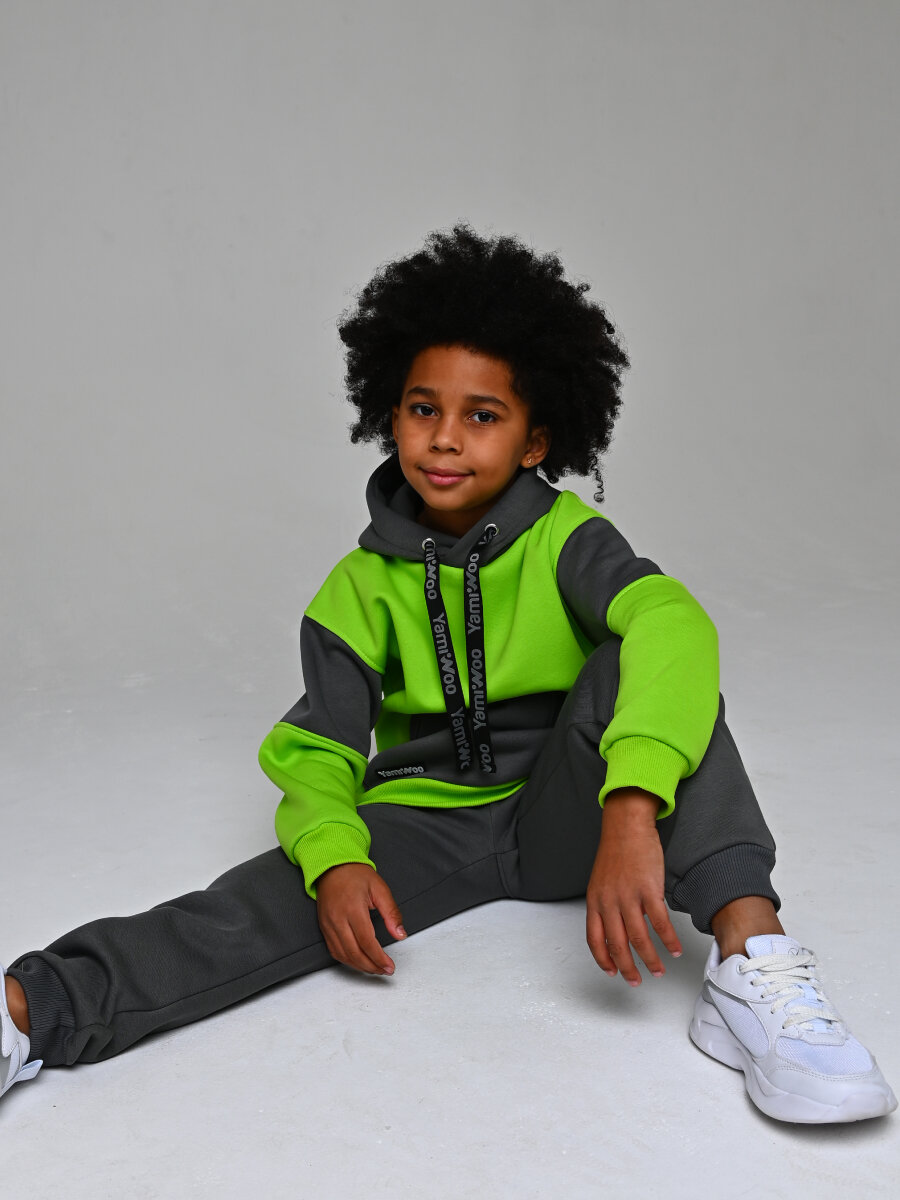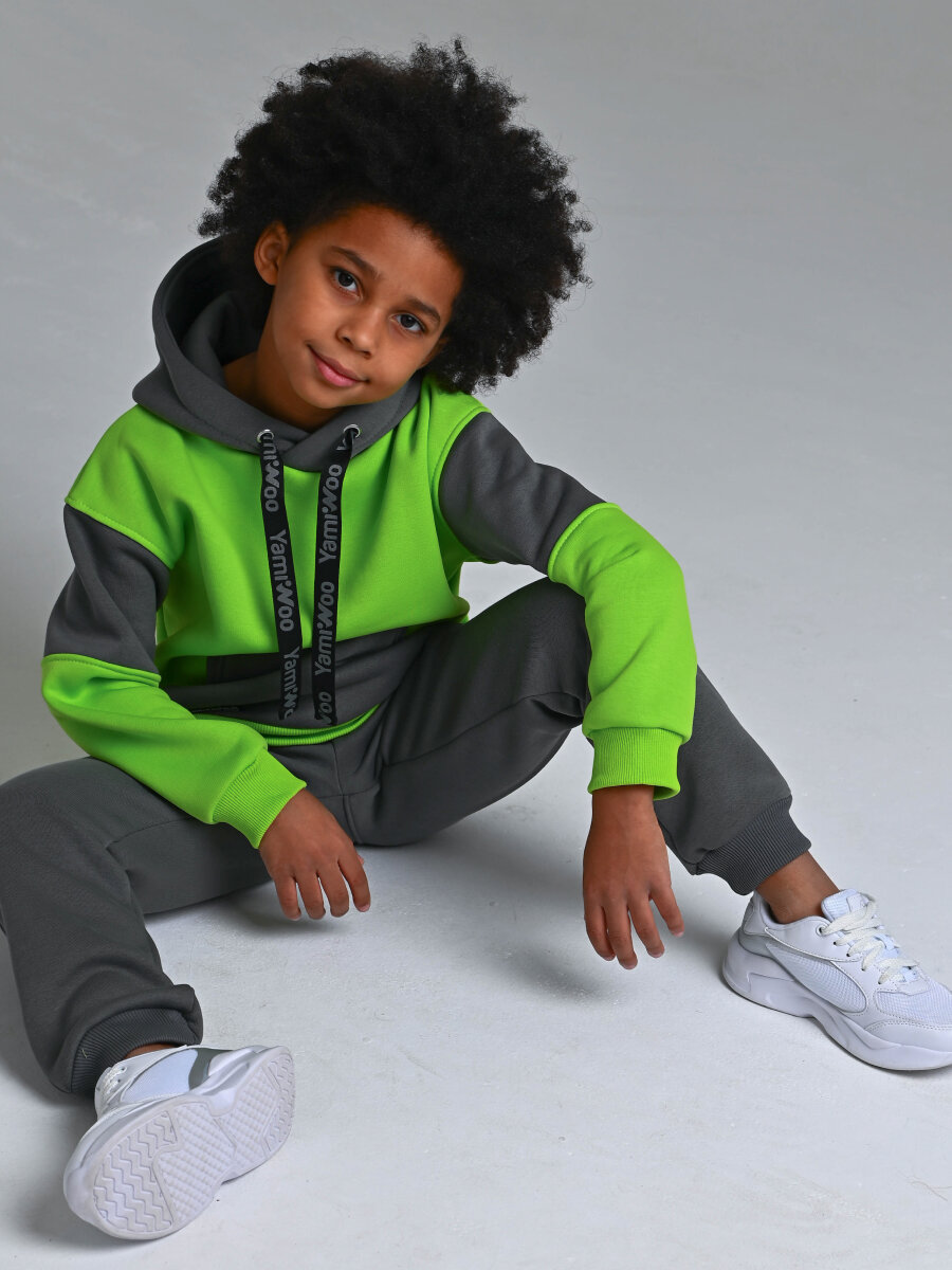 Спортивный костюм для мальчика с начесом Yamiwoo, салатовый, размер 116