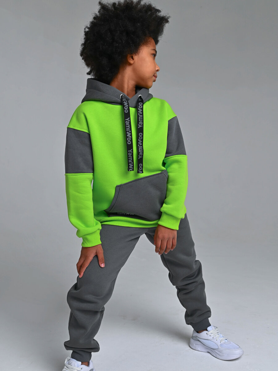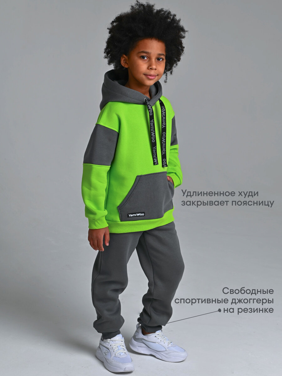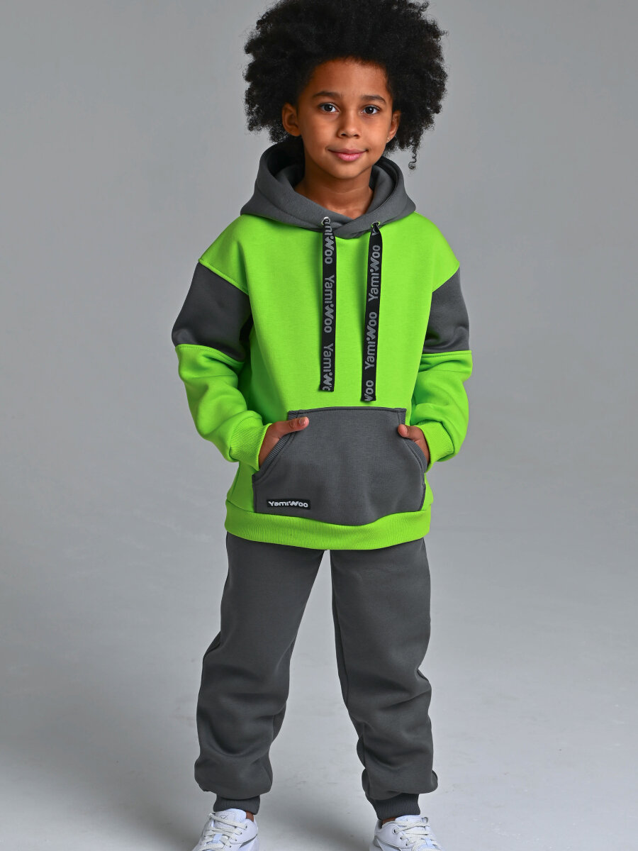 Спортивный костюм для мальчика с начесом Yamiwoo, салатовый, размер 128