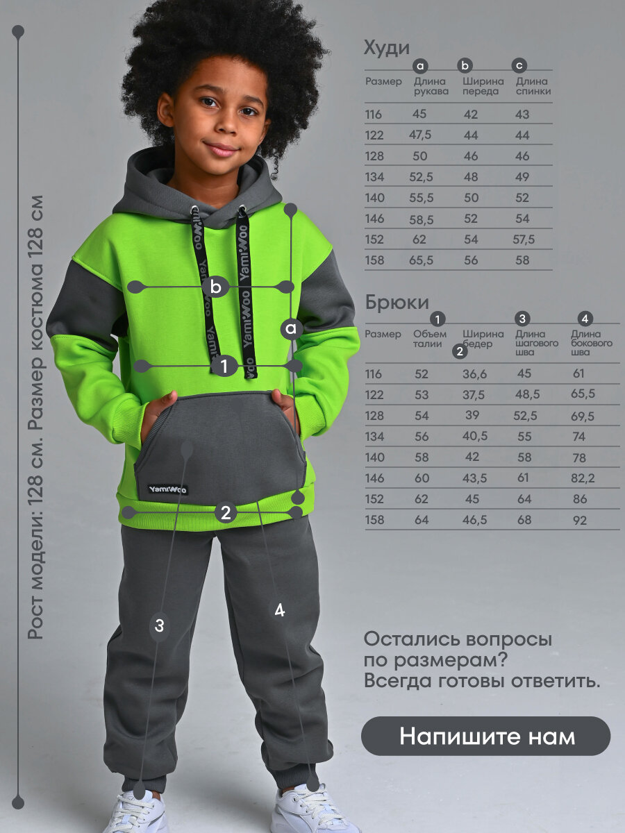 Спортивный костюм для мальчика с начесом Yamiwoo, салатовый, размер 146
