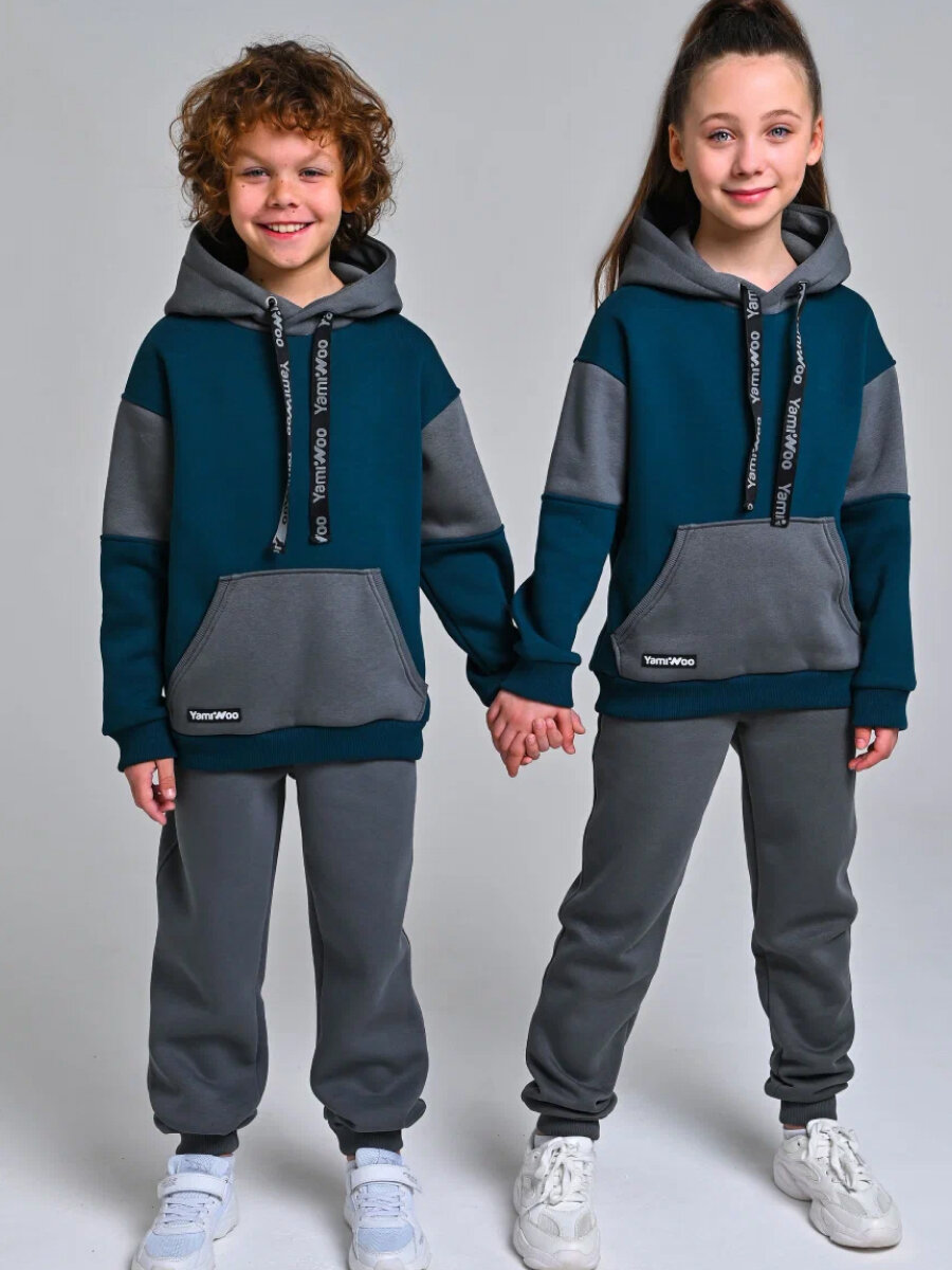 Спортивный костюм для мальчика с начесом Yamiwoo, изумруд голубой, размер 128