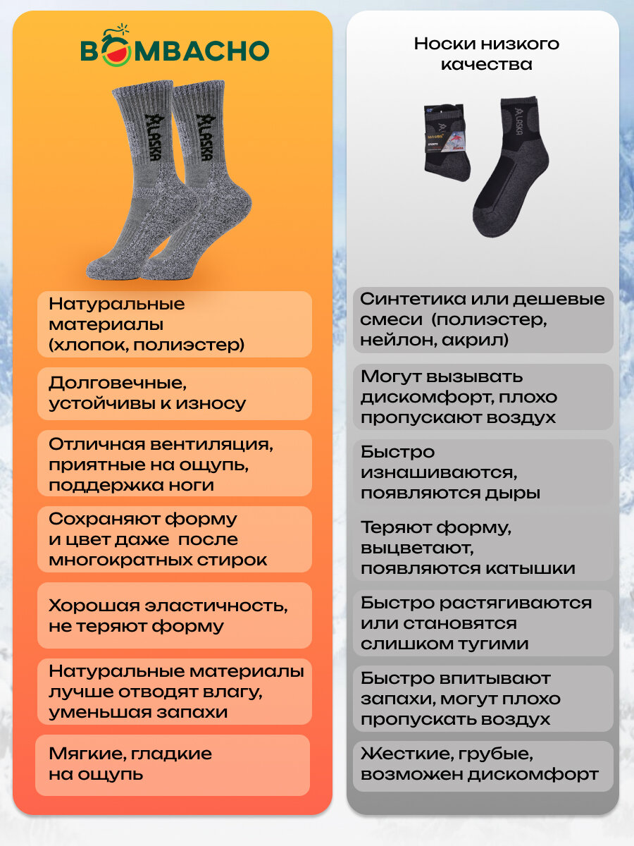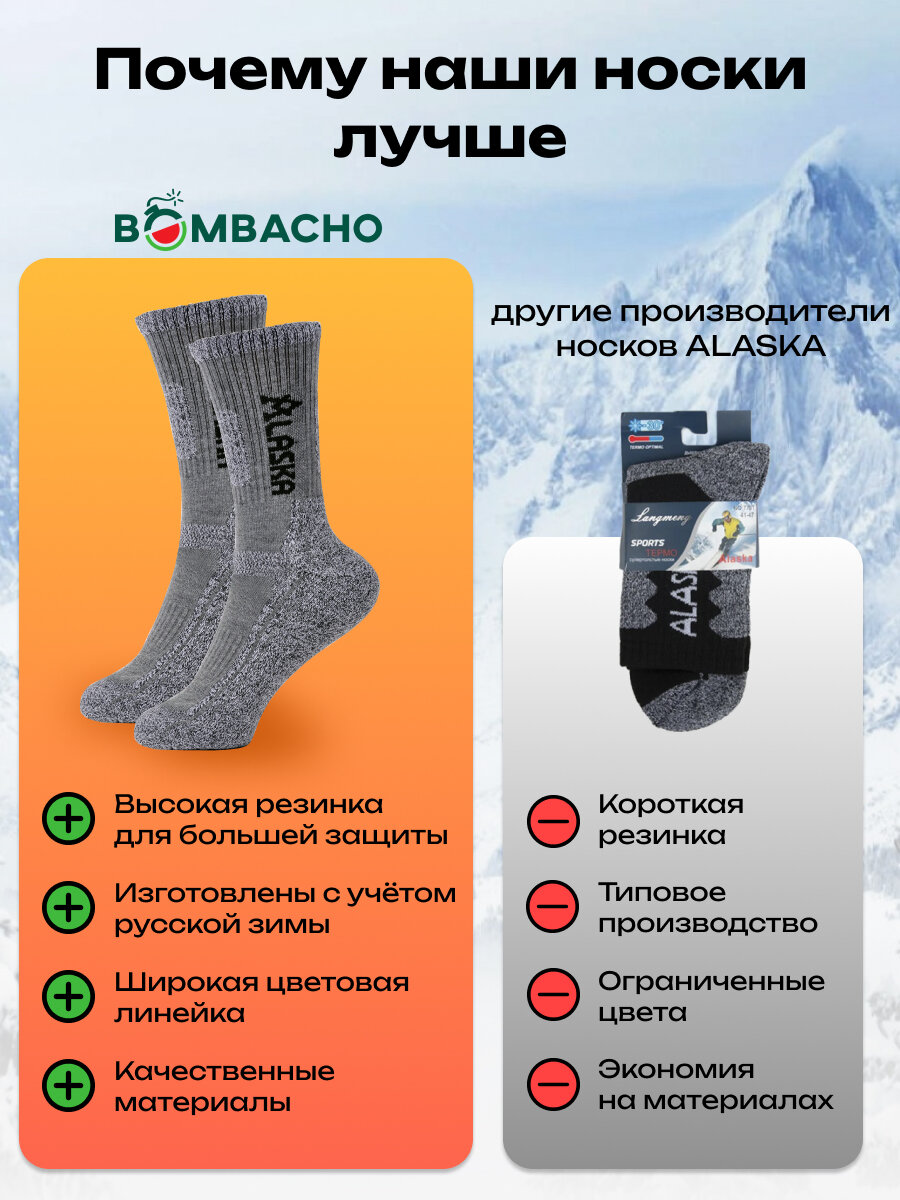 Мужские термоноски Bombacho, Аляска, размер 41-46, 1 пара, Черный