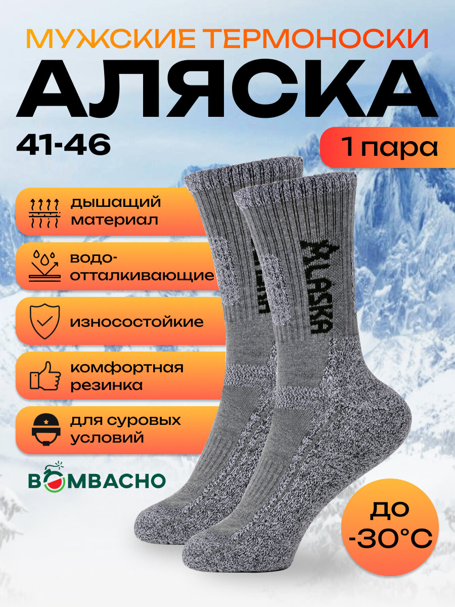 Мужские термоноски Bombacho, Аляска, размер 41-46, 1 пара, Светло-серый