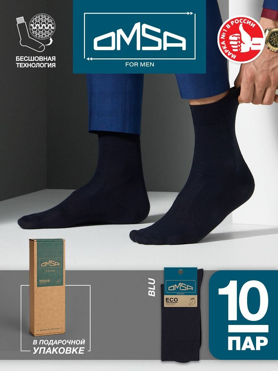 Носки мужские OMSA ECO 401, высокие, комплект 10 шт, Цвет Blu, Размер 42-44 (27-29), уп."Крафт"
