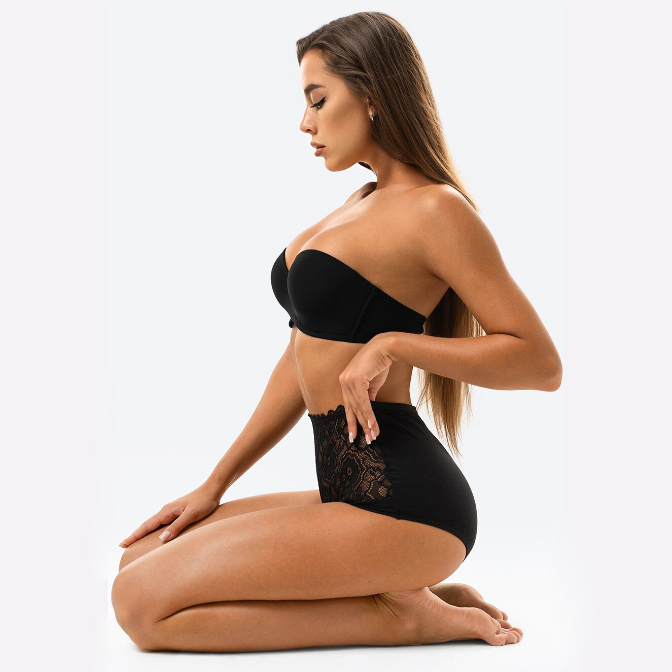 Кружевные трусы женские с высокой посадкой набор 3 шт. Слипы HF93020черный.3