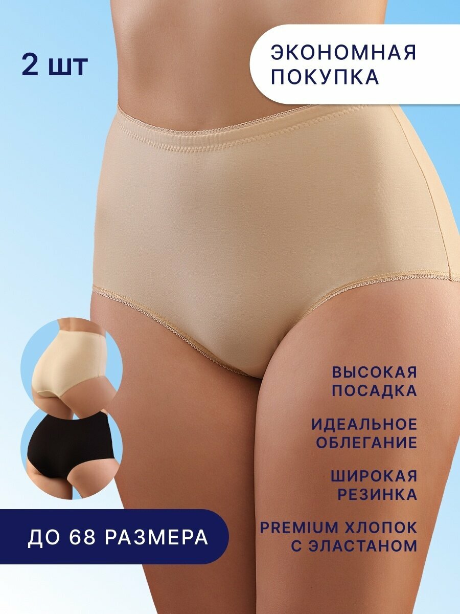 Трусы SeNso Набор трусов с высокой посадкой большие размеры, комплект из 2 шт., размер 62, бежевый/белый