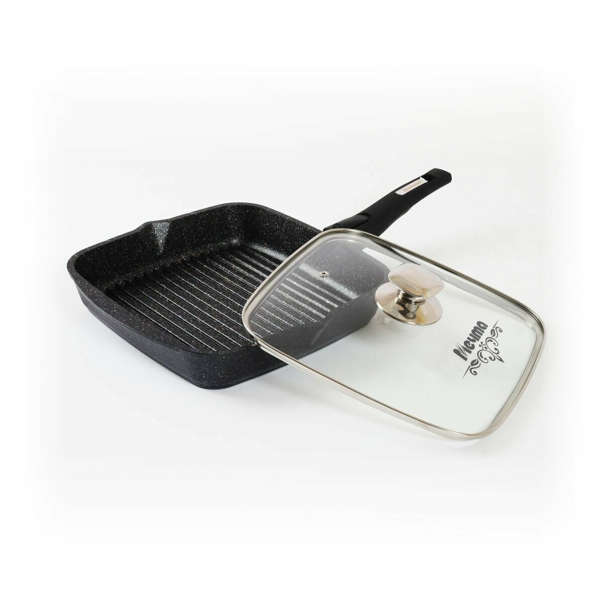 Сковорода-гриль квадр. "Мечта" 24*24см Гранит с антипригарным покрытием с несъемной ручкой, можно мыть в посудомоечной машине