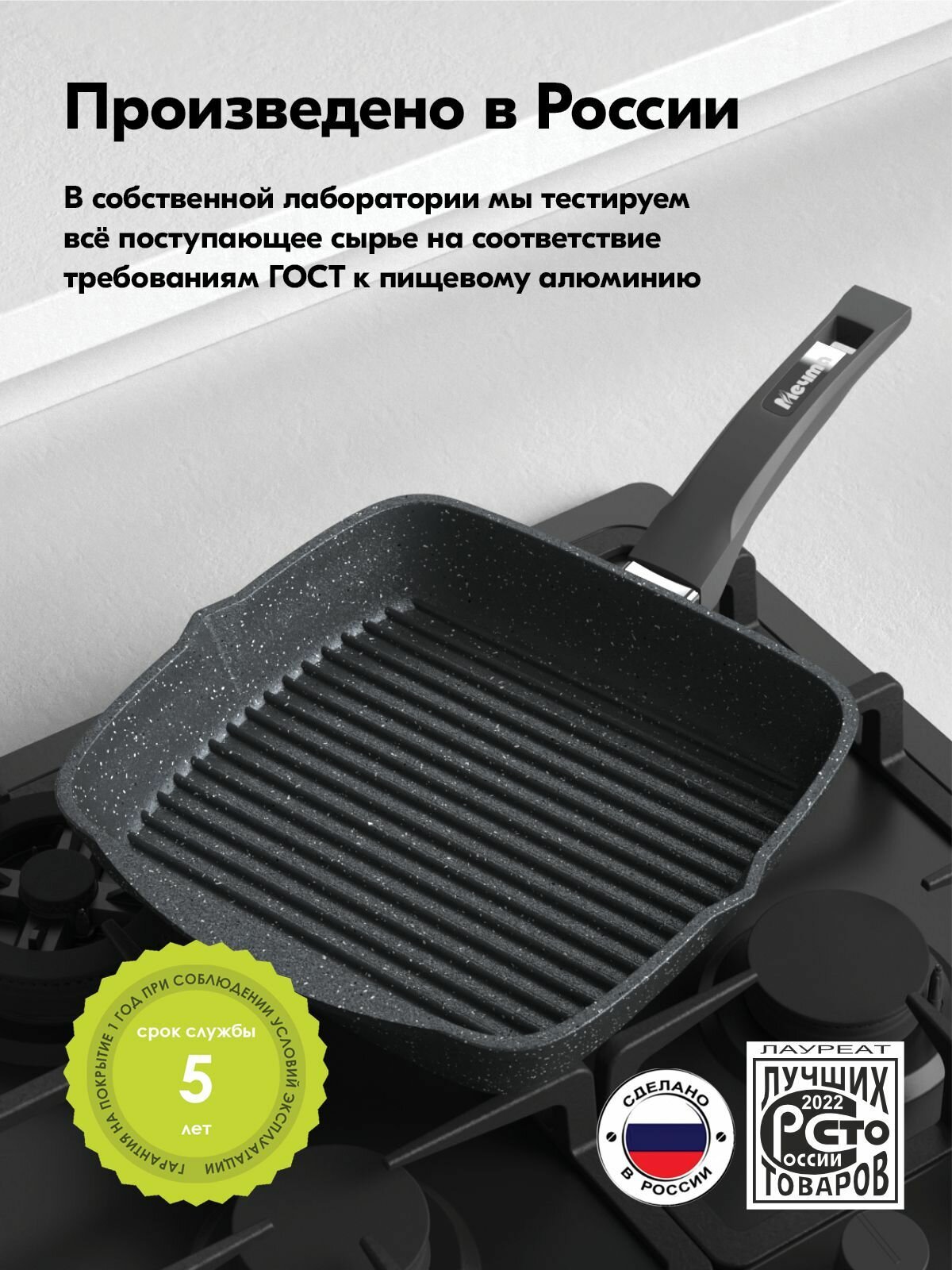 Сковорода-гриль квадр. "Мечта" 24*24см Гранит с антипригарным покрытием с несъемной ручкой, можно мыть в посудомоечной машине