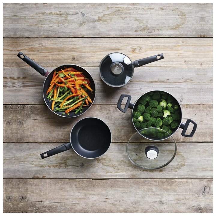 | Плюсы: | Крышка точно попадает в сковороду |