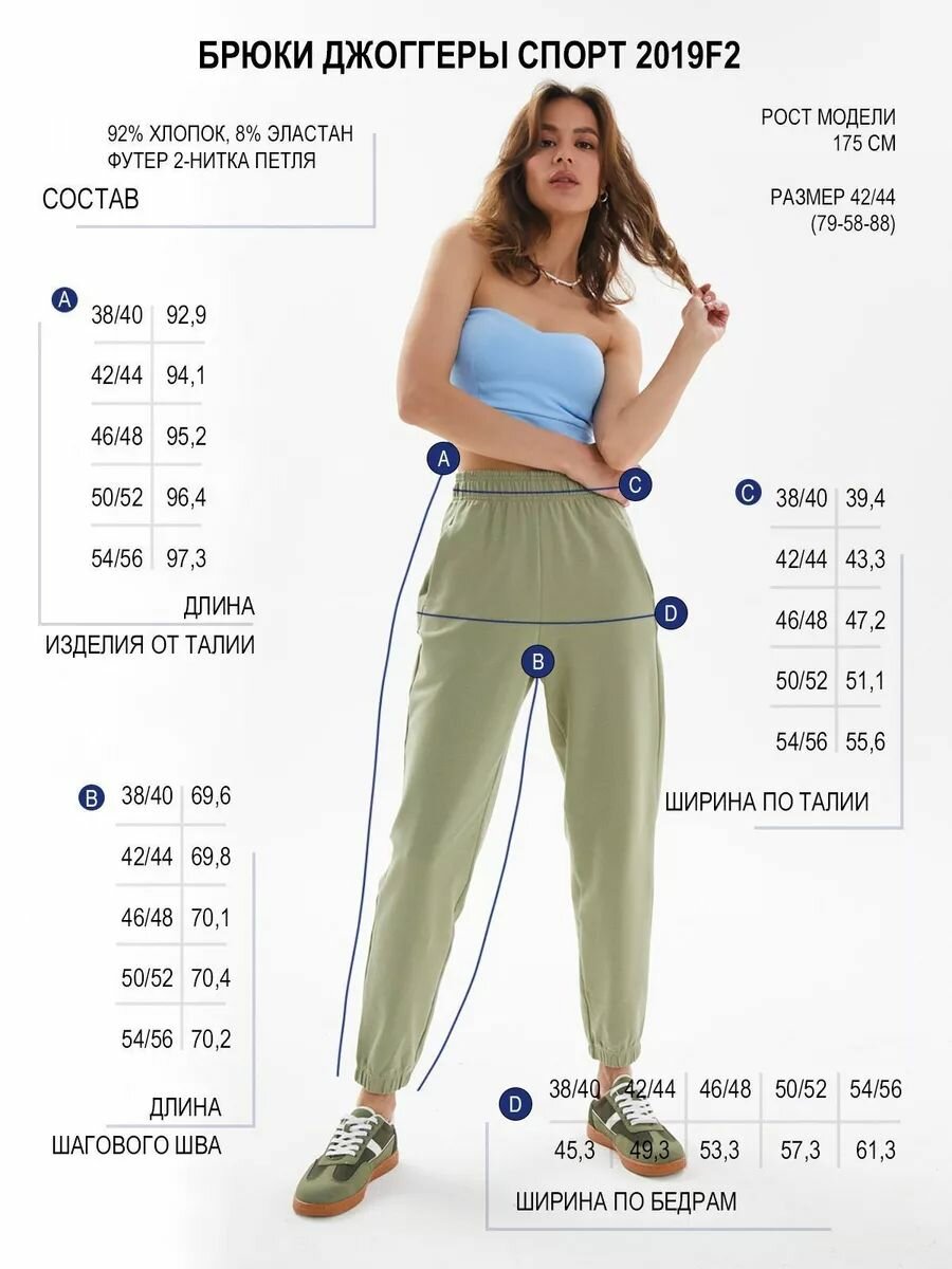 2019F2 Брюки Джоггеры укороченные HIGH TEMP, Шалфей, 42/44