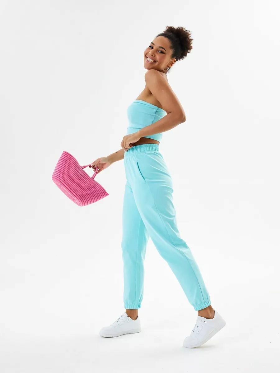 2019F2 Спортивные штаны джоггеры укороченные женские HIGH TEMP, Ментол, 46/48
