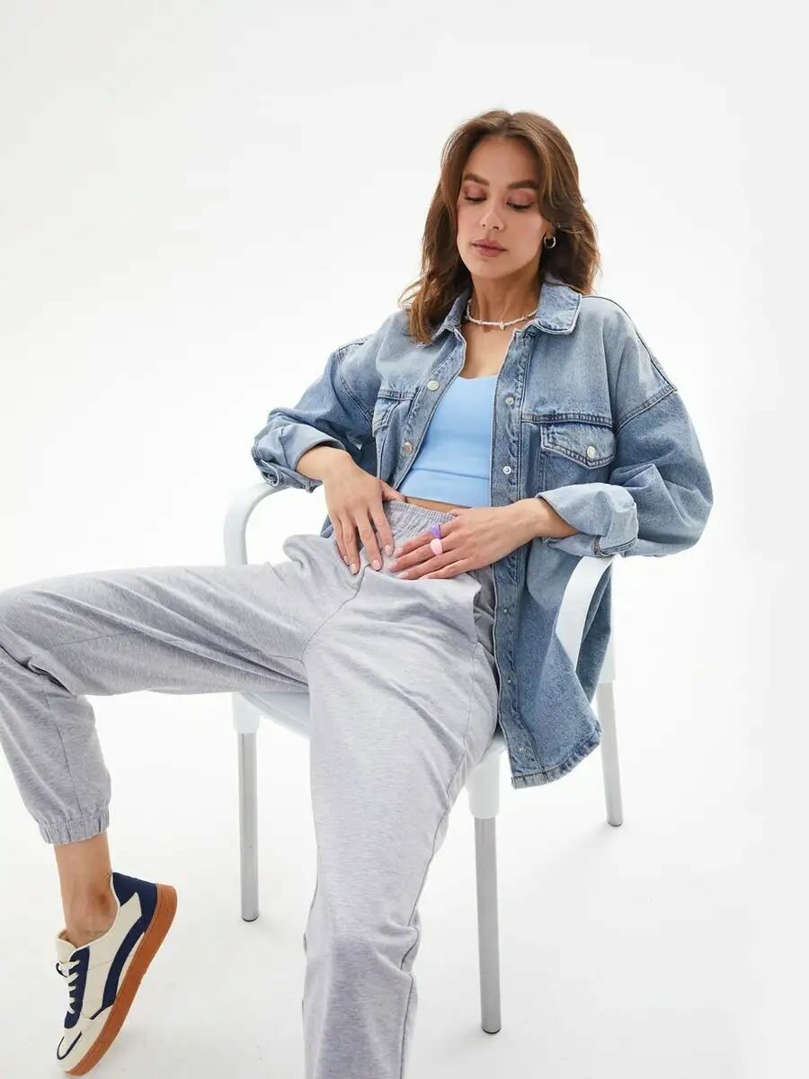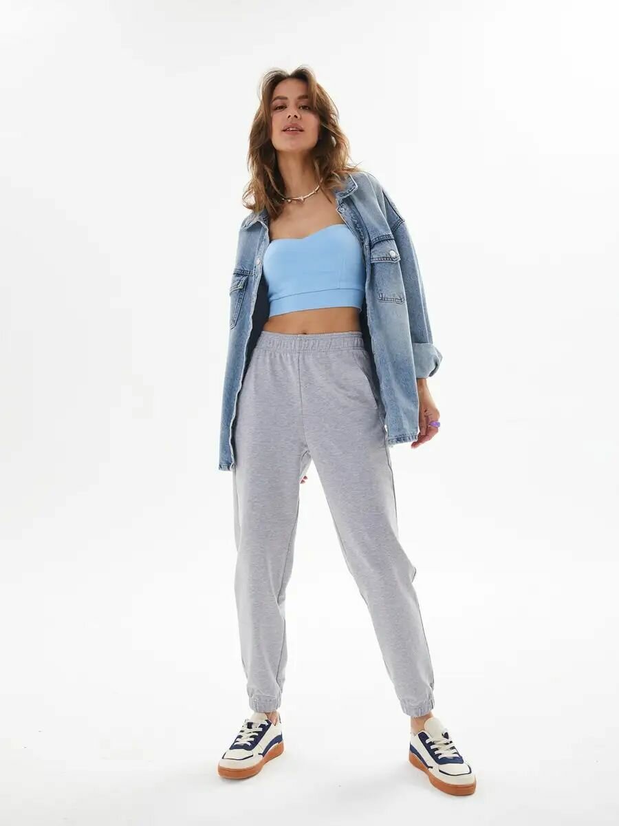 2019F2 Спортивные штаны джоггеры укороченные женские HIGH TEMP, Серо-голубой, 46/48