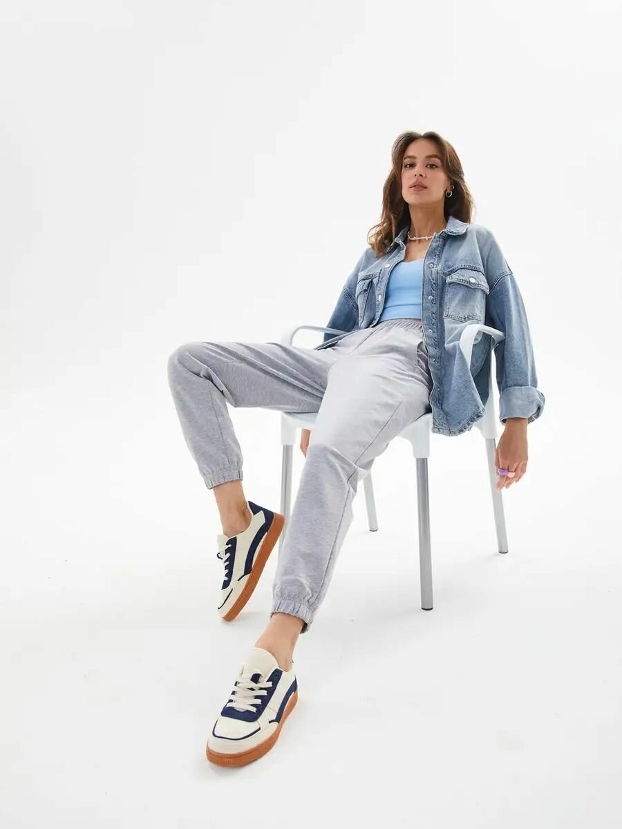 2019F2 Спортивные штаны джоггеры укороченные женские HIGH TEMP, Серо-голубой, 38/40