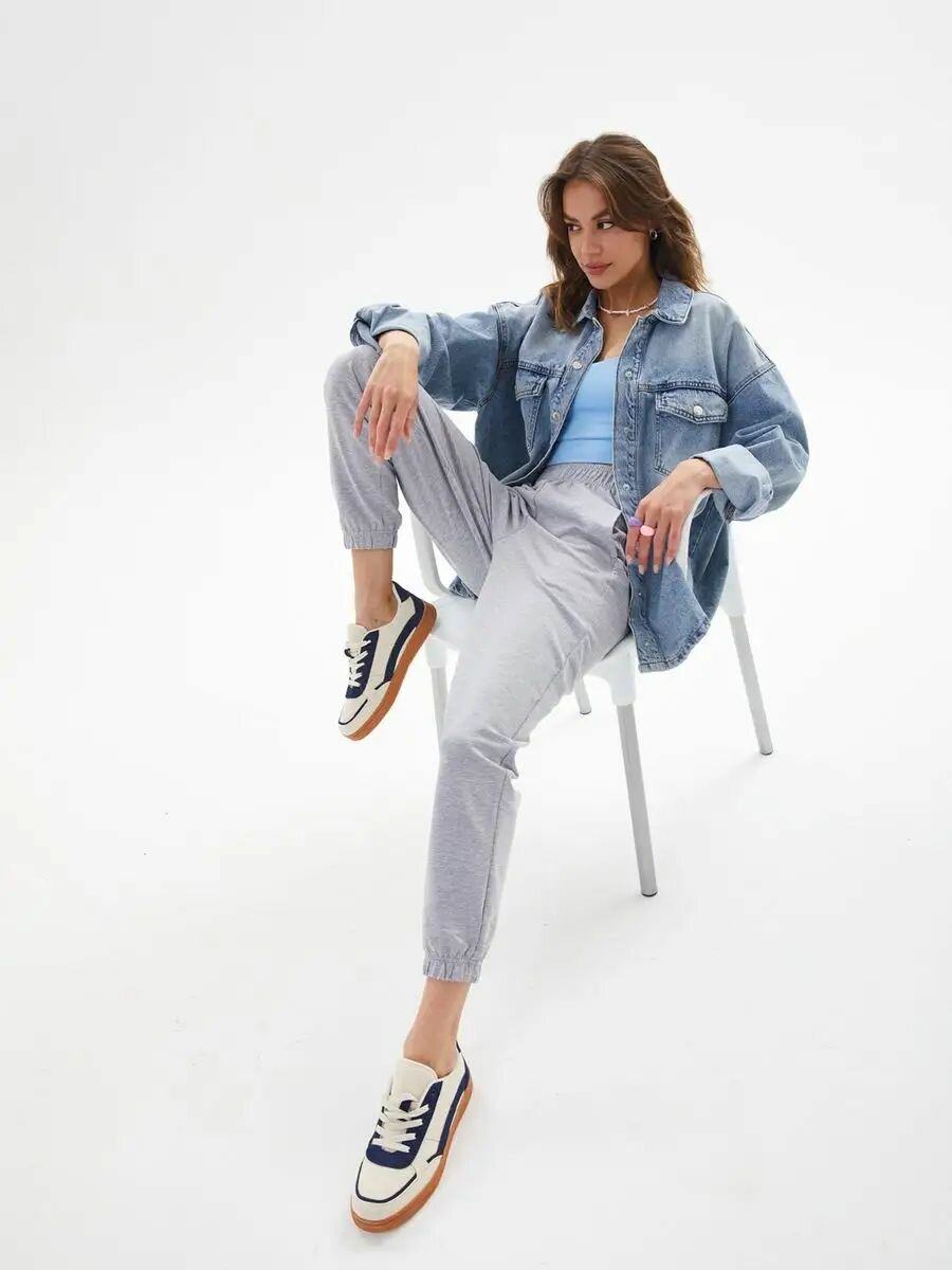 2019F2 Спортивные штаны джоггеры укороченные женские HIGH TEMP, Серо-голубой, 38/40
