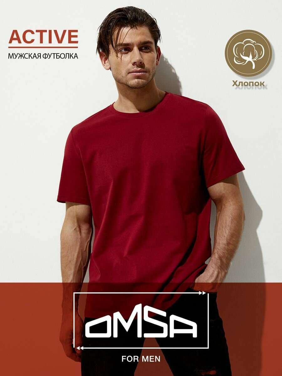 Футболка мужская Omsa OmT_U 1201 COTTON, хлопковая, спортивная, свободного кроя, цвет Bordo размер 52/2XL