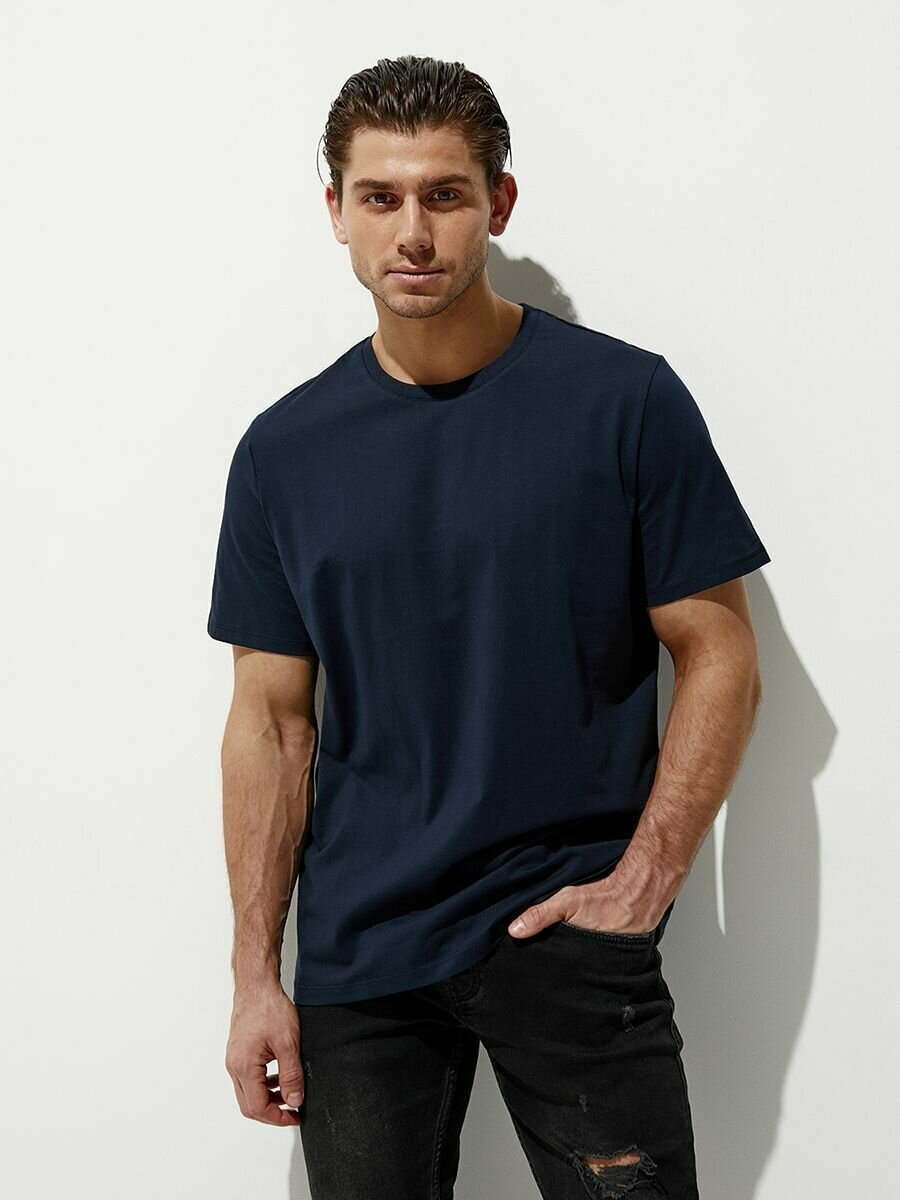 Футболка мужская Omsa OmT_U 1201 COTTON, хлопковая, спортивная, свободного кроя, цвет Blu Notte размер 44/S