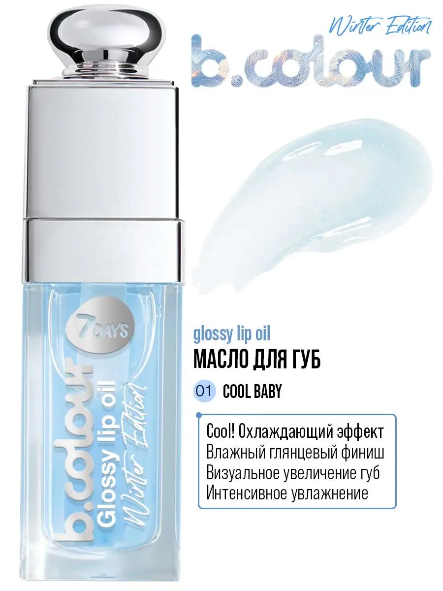 Купить 7DAYS Блеск для губ прозрачный, масло охлаждающее, увлажняющее B.COLOUR 01 COOL BABY