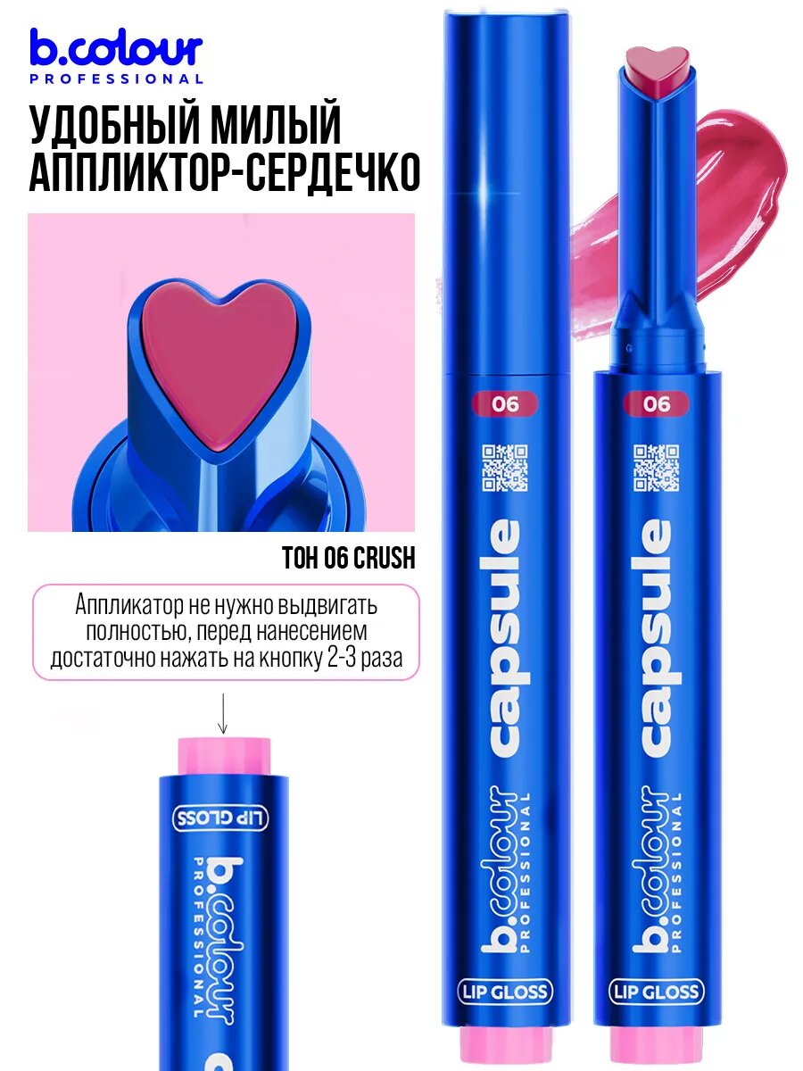 Блеск для губ B.COLOUR PROFESSIONAL CAPSULE увеличивающий объем увлажняющий розовый прозрачный 06 Crush