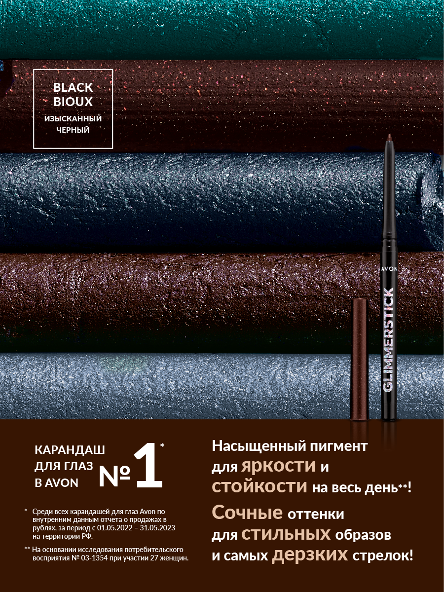 Купить Мерцающий карандаш для глаз Avon тон изысканный черный Black Bioux