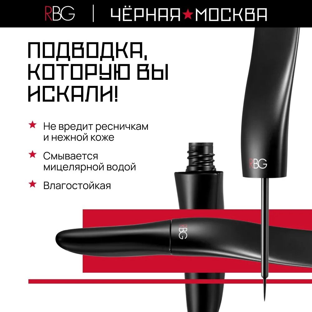 Подводка для глаз жидкая RBG, черная, тон 01, стойкая, без спирта. интересное: