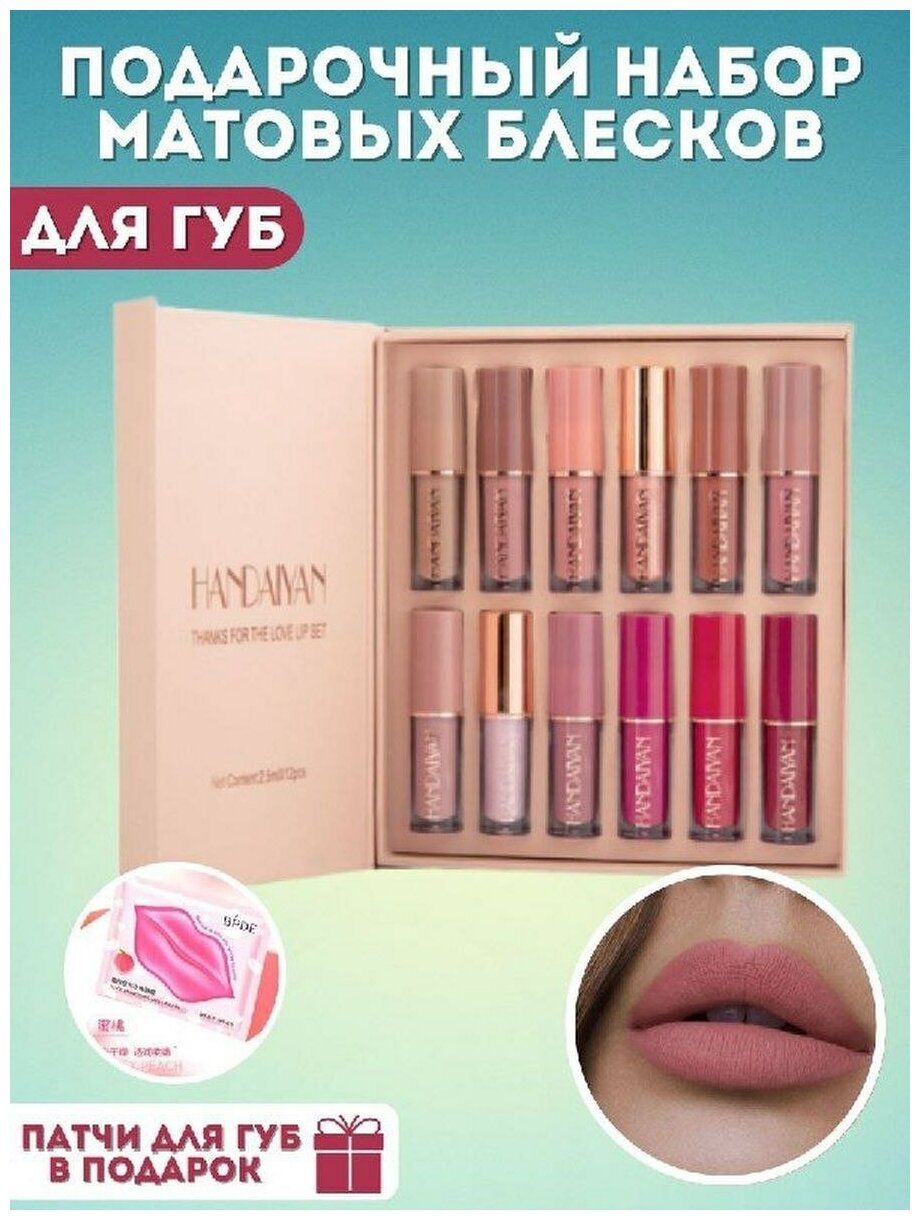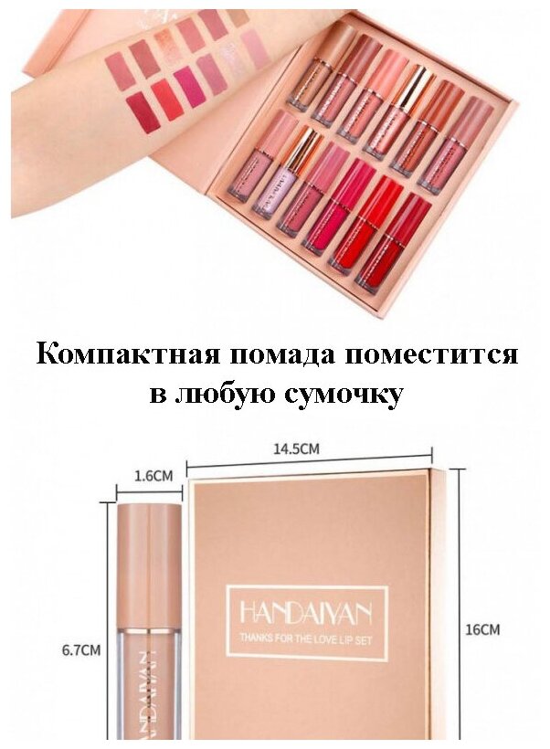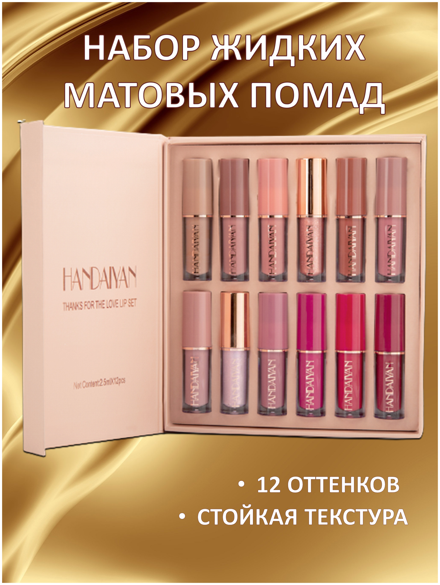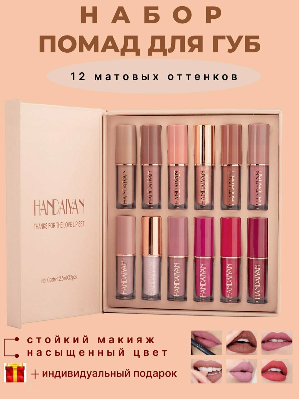 HANDAIYAN Набор жидких матовых помад, оттенок мультиколор