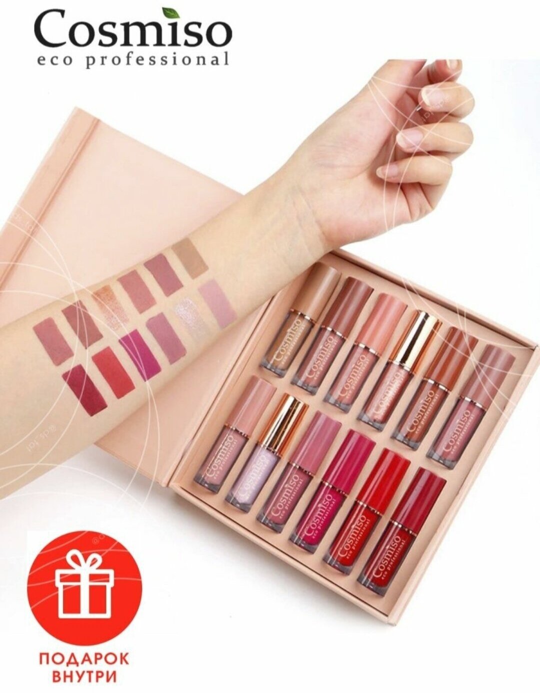 Набор жидких помад "Cosmiso" - 12 оттенков в коробке интересное: