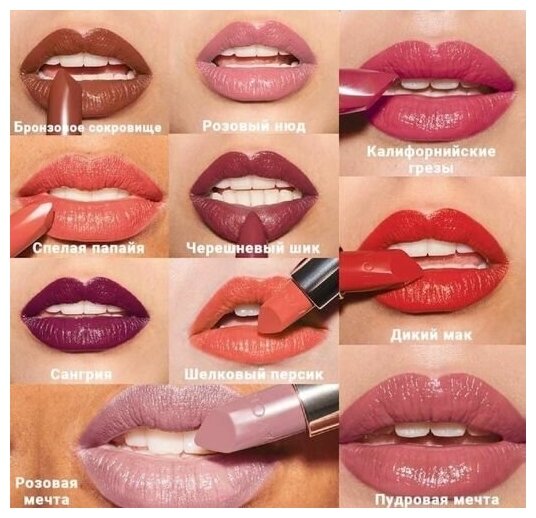| Способ применения | Стиком помады или плоской кистью для макияжа губ нанеси помаду, очерчивая контур губ. Затем нанеси помаду на губы, двигаясь от центра к уголкам губ. Для максимальной стойкости промокни уже накрашенные губы салфеткой и нанеси еще один слой помады. Для создания более четкого контура предварительно нанеси карандаш для губ: обведи контур и затем заполни губы карандашом полностью, с ним помада будет держаться дольше и не растечется. Чтобы создать растушеванный контур, нанеси и растушуй помаду пушистой кистью для теней или пальцем. |